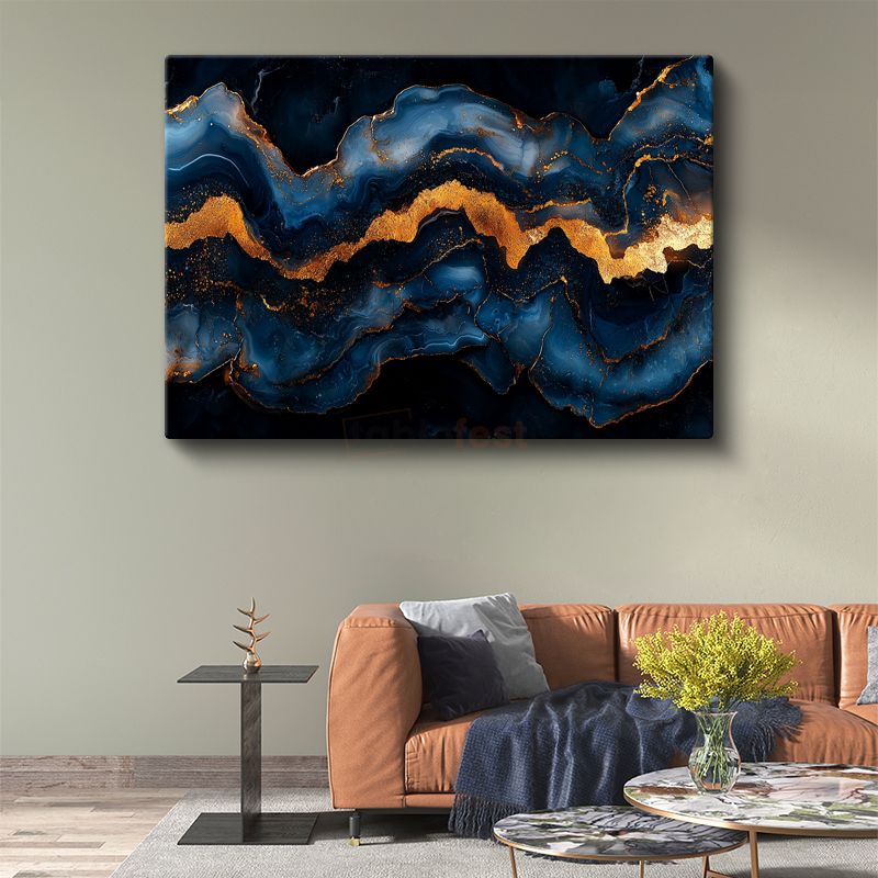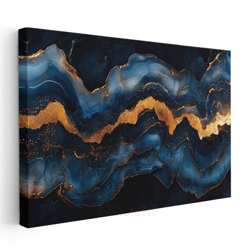 Altın Dalgalar - Mavi Akışkan Sanat Kanvas Tablo