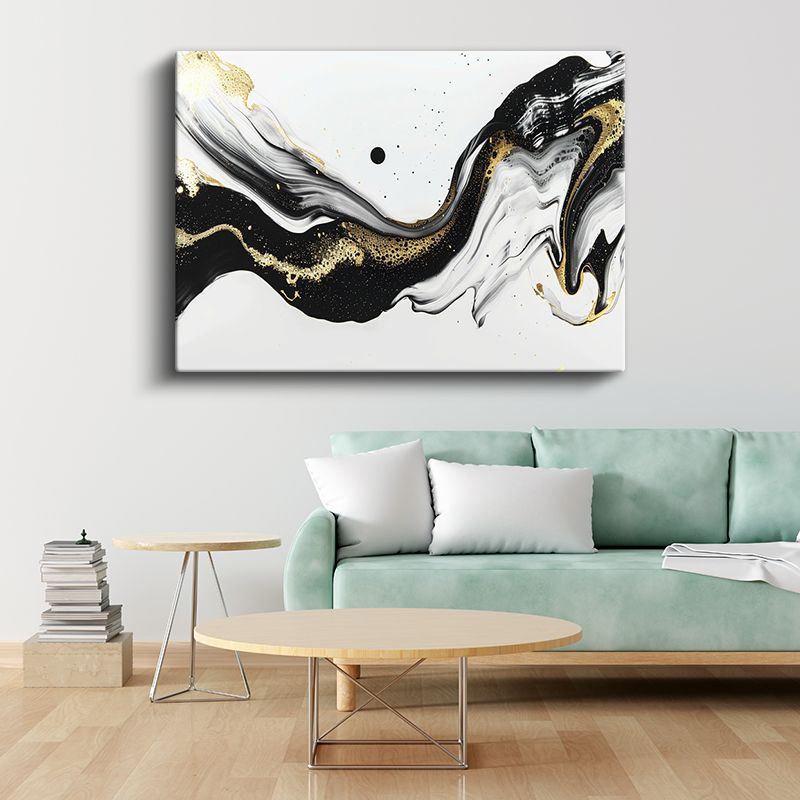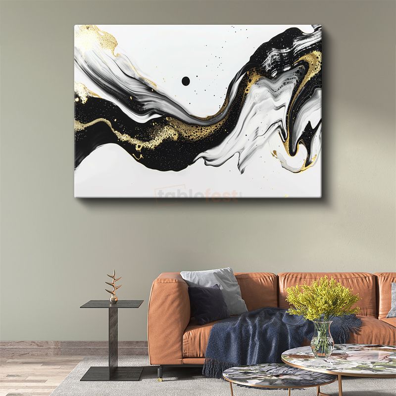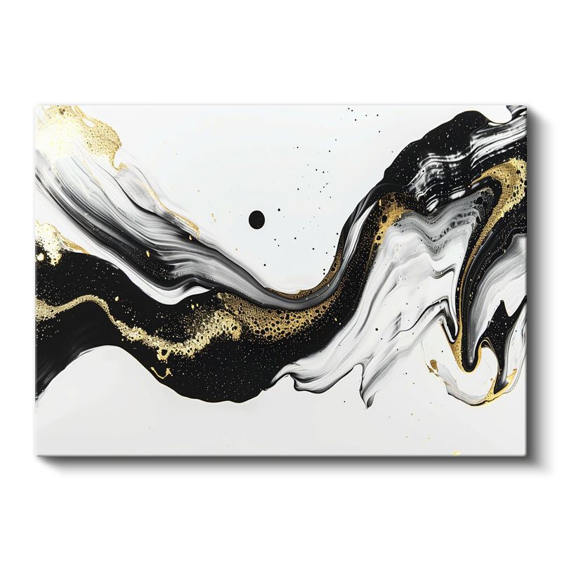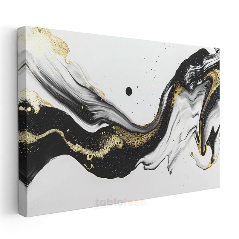 Altın Dalgalar - Siyah Beyaz Kontrast Akışkan Sanat Kanvas Tablo