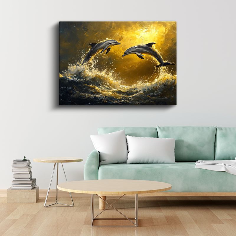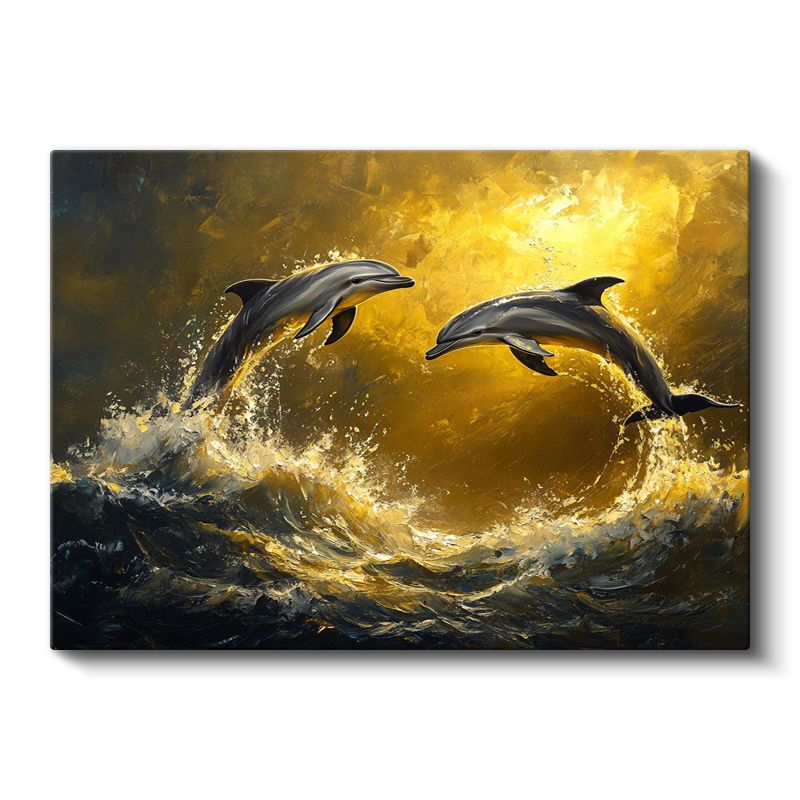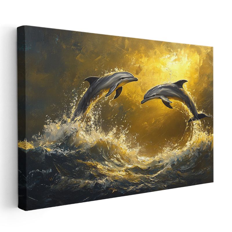 Altın Dalgalar Yunusları - Görkemli Sıçrayış Anı Kanvas Tablo