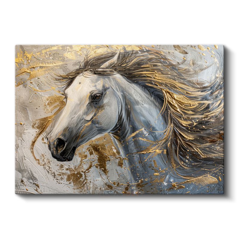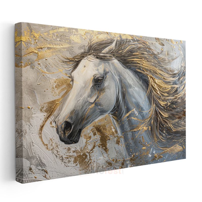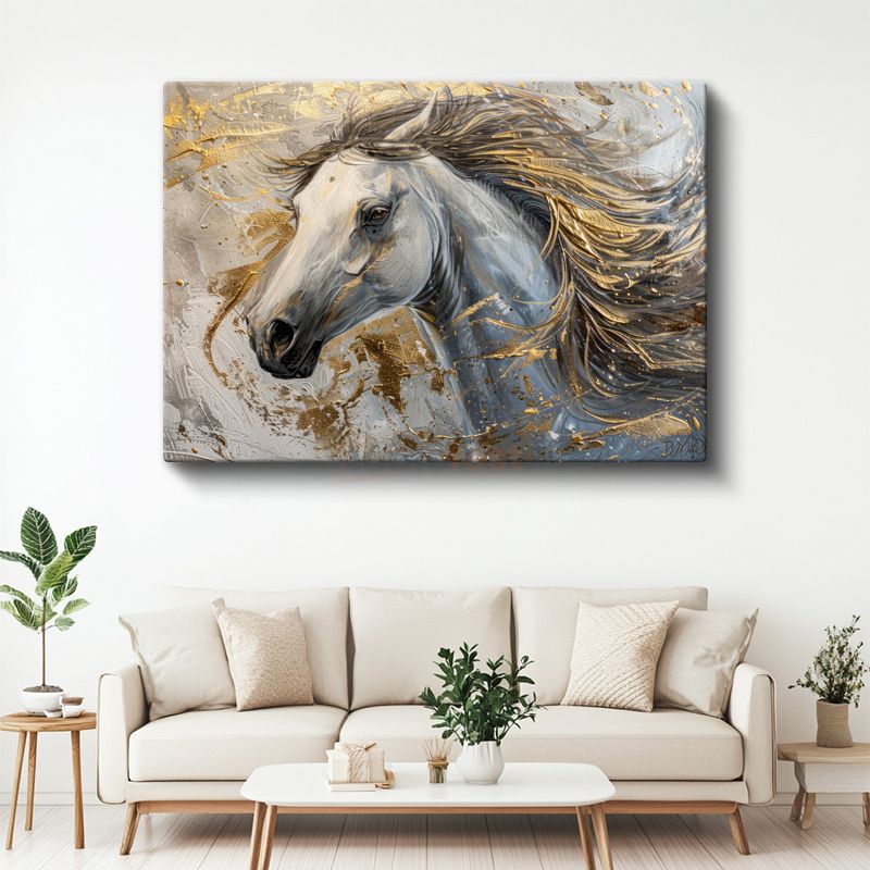 Altın Dokunuş - Beyaz At Portresi Kanvas Tablo