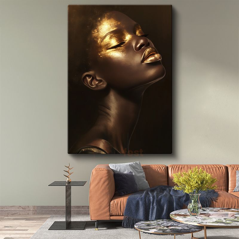 Altın Dokunuş - Bronz Tonlarında Sanatsal Portre Kanvas Tablo