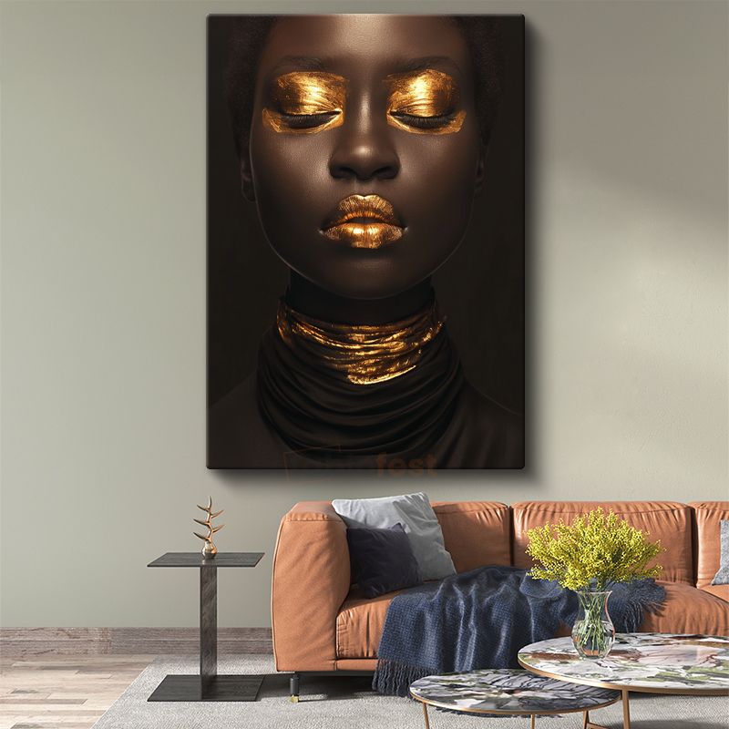 Altın Dokunuş - Lüks Minimalist Portre Kanvas Tablo