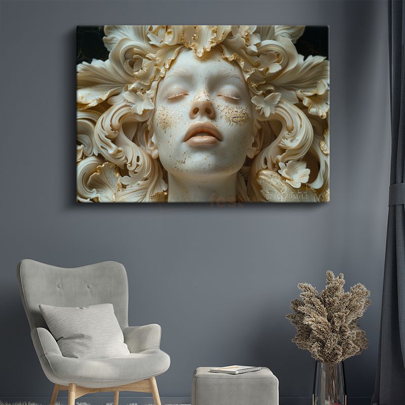 Altın Dokunuş - Rüyalara Dalan Heykelsi Yüz Kanvas Tablo