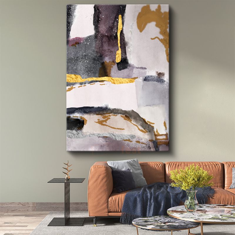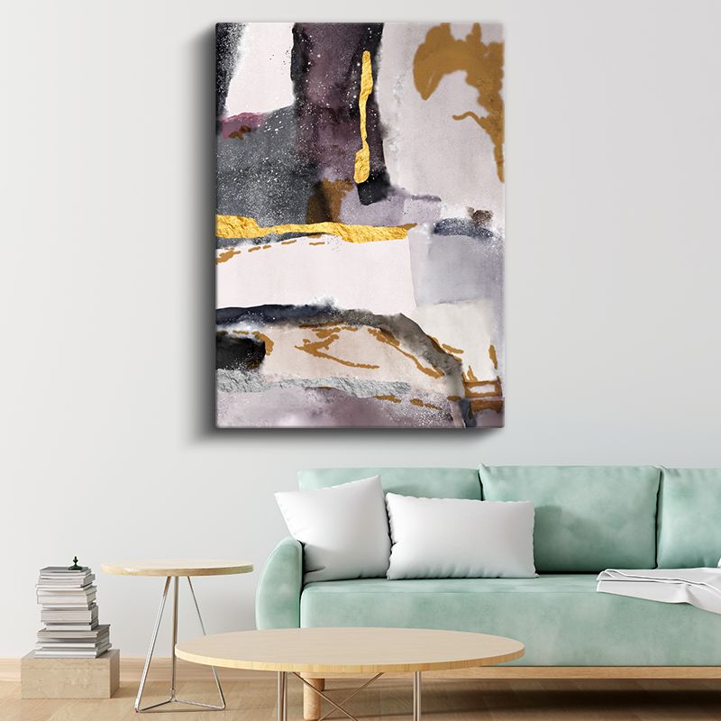 Altın Dokunuşlar - Soyut Akışkan Leke Kompozisyonu Kanvas Tablo