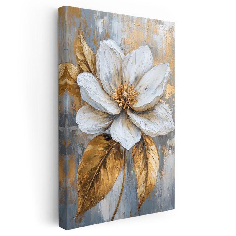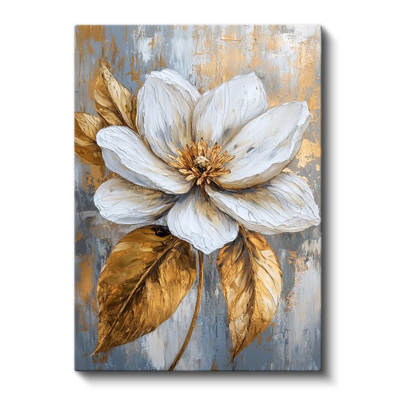 Altın Dokunuşlu Beyaz Çiçek - Tekstürlü Sanat Kanvas Tablo