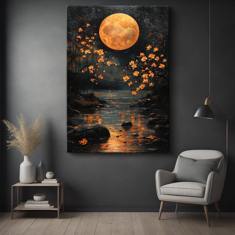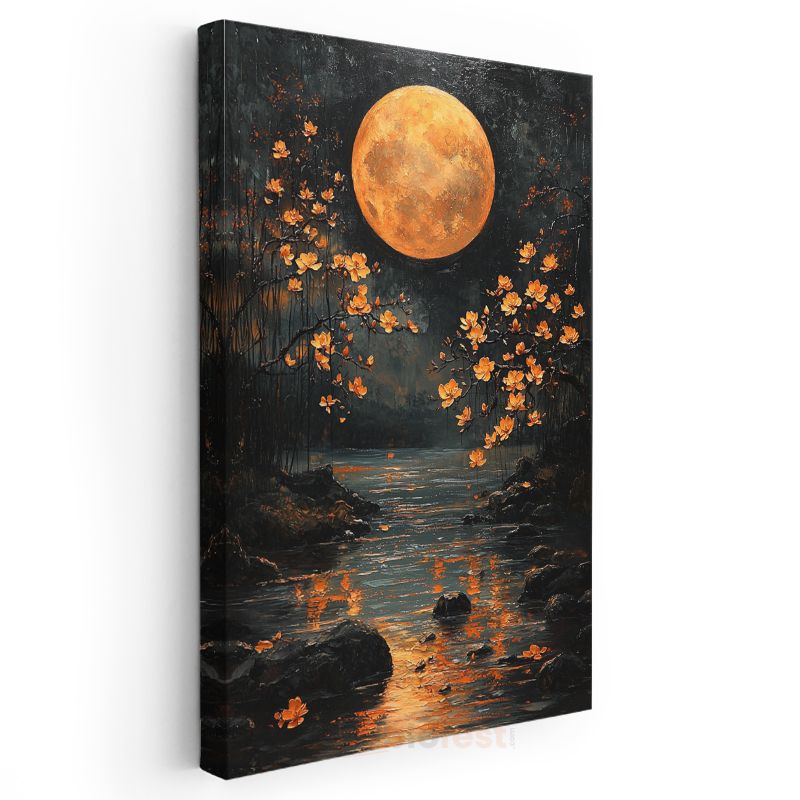 Altın Dolunay - Çiçekli Dere Manzarası Kanvas Tablo