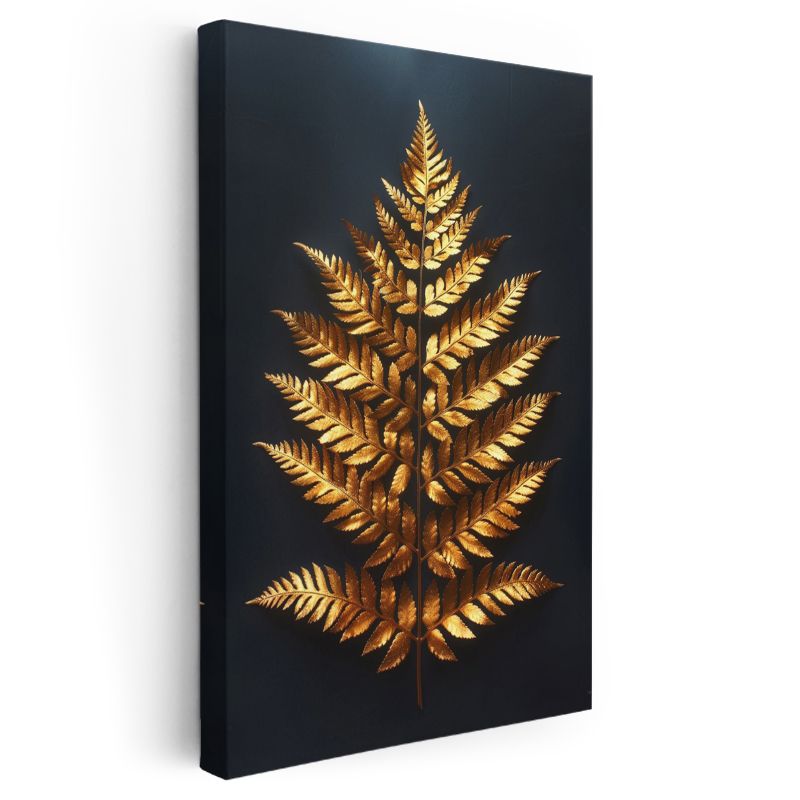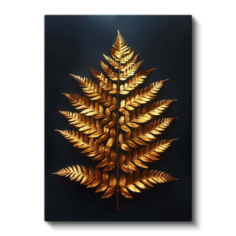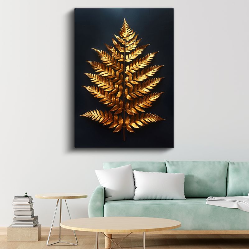 Altın Eğrelti Otu - Zarif Metalik Yaprak Kanvas Tablo