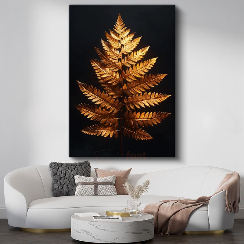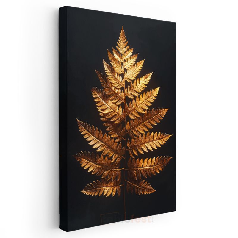 Altın Eğrelti - Siyah Fonda Lüks Botanik Kanvas Tablo