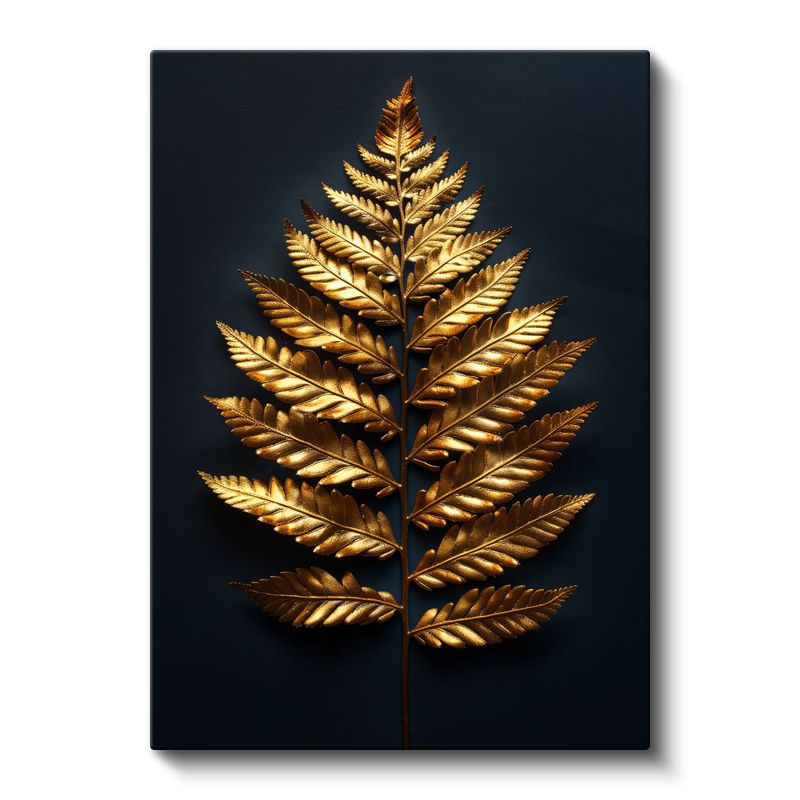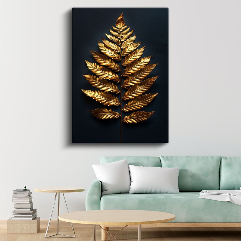 Altın Eğrelti - Siyah Fonda Metalik Yaprak Kanvas Tablo