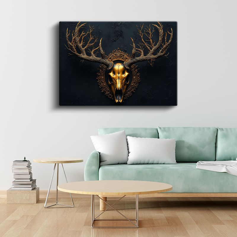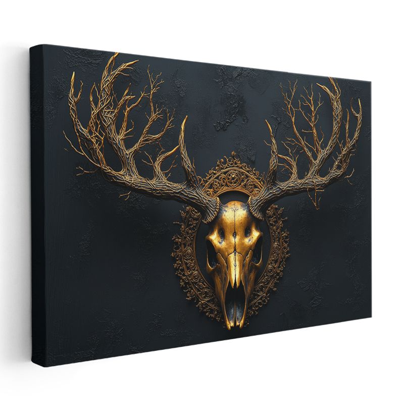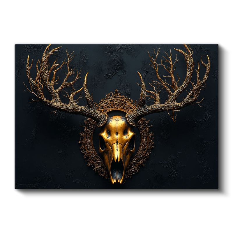 Altın Geyik Kafatası - Mistik Boynuzlar Kanvas Tablo