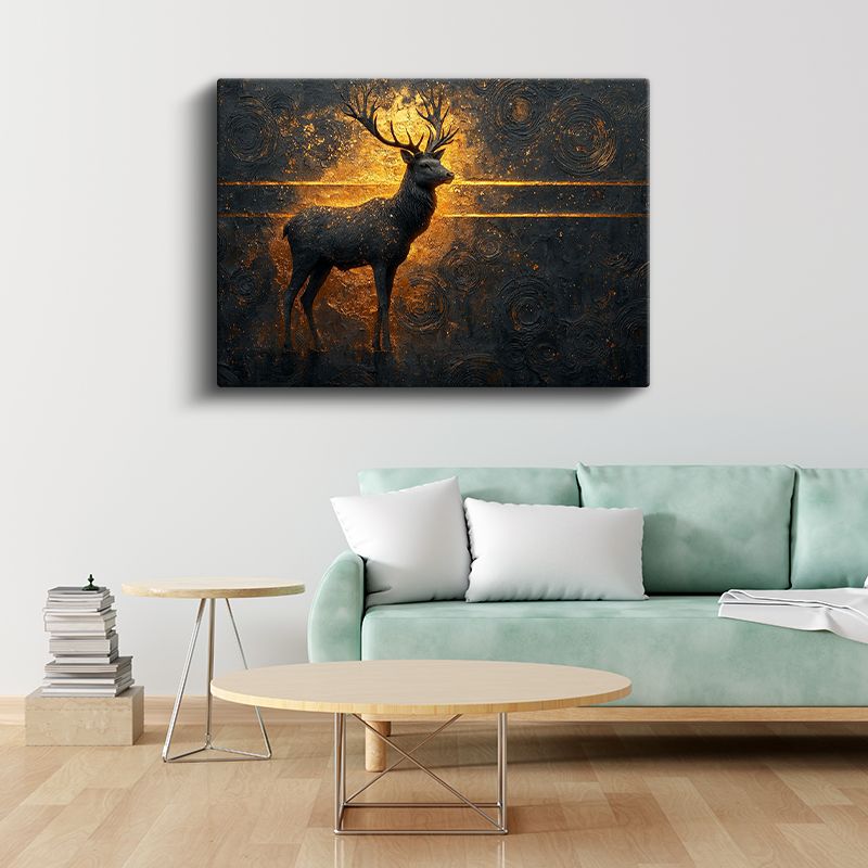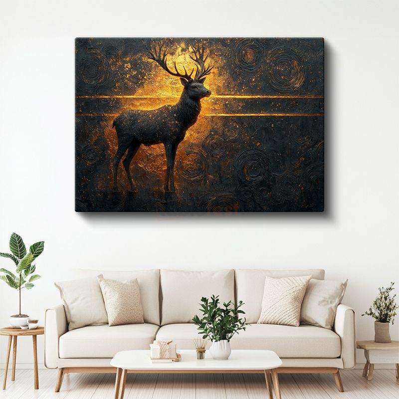 Altın Geyik - Karanlıkta Parlayan Heybetli Duruş Kanvas Tablo
