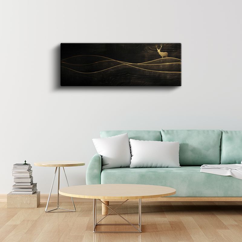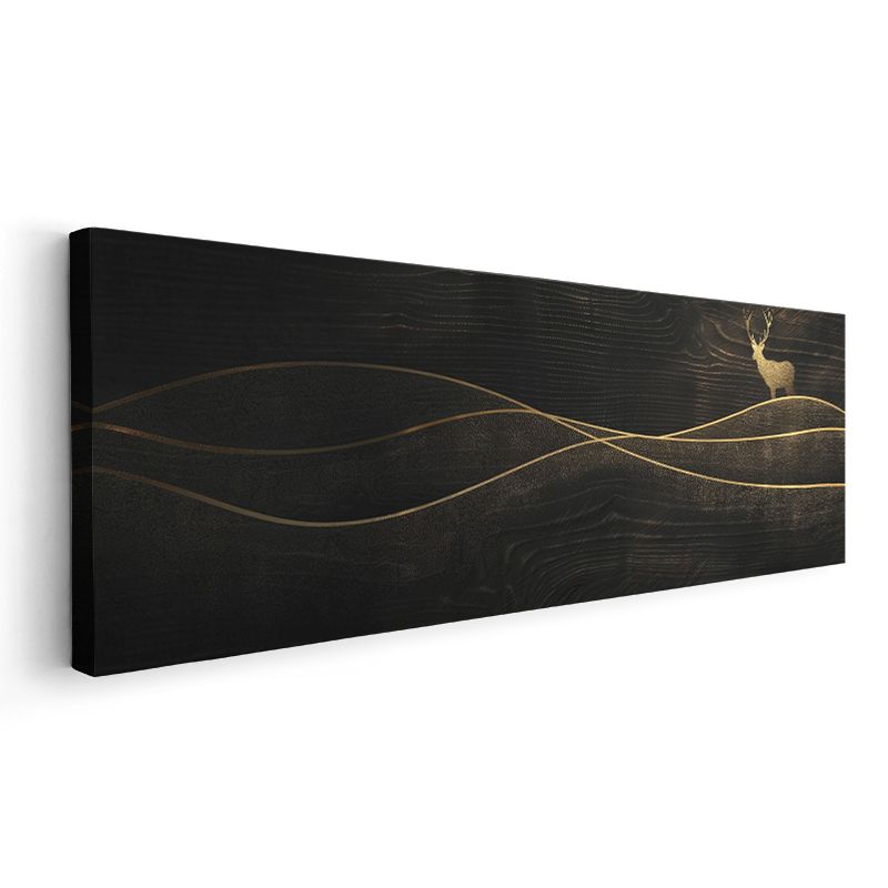 Altın Geyik - Siyah Zeminde Zarif Siluet Kanvas Tablo