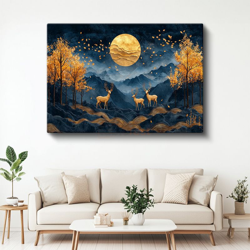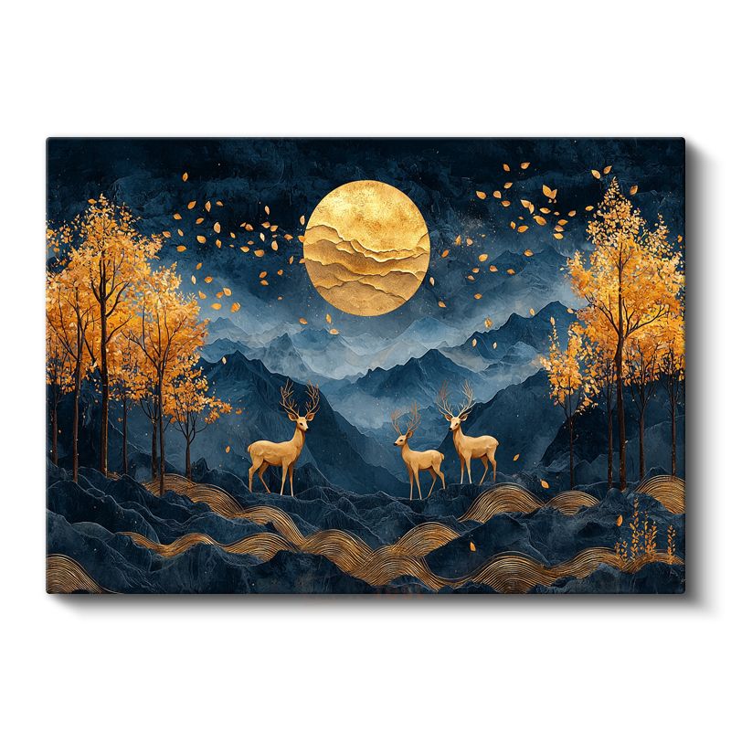 Altın Geyikler - Ay Işığında Üçlü Buluşma Kanvas Tablo
