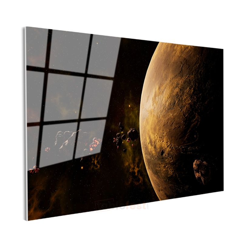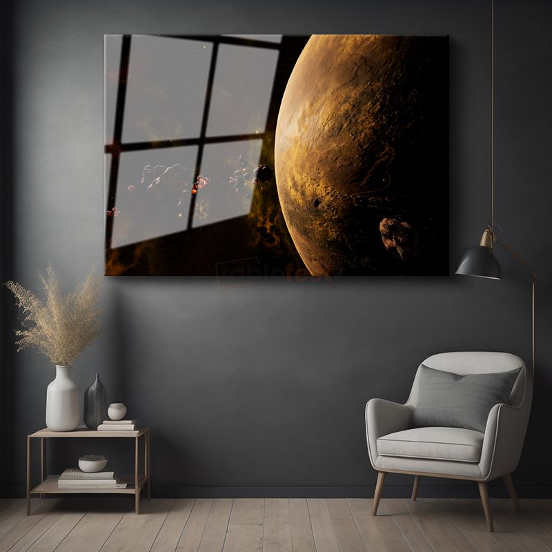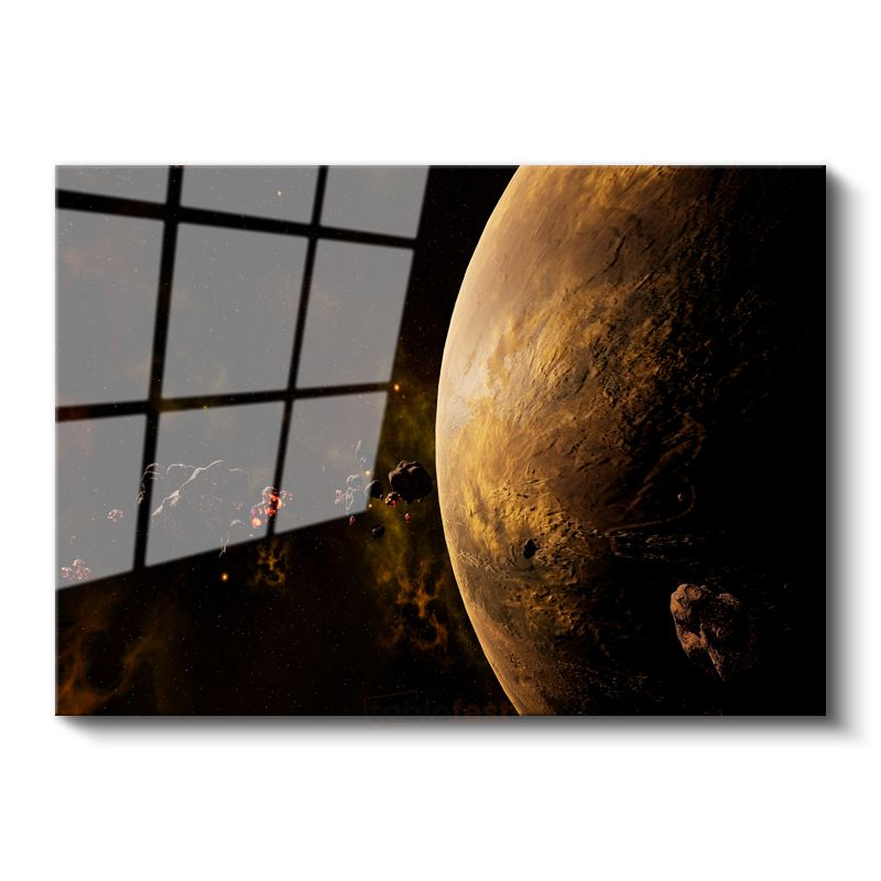Altın Gezegen - Kozmik Derinliklerde Parıldayan Gök Cismi Cam Tablo