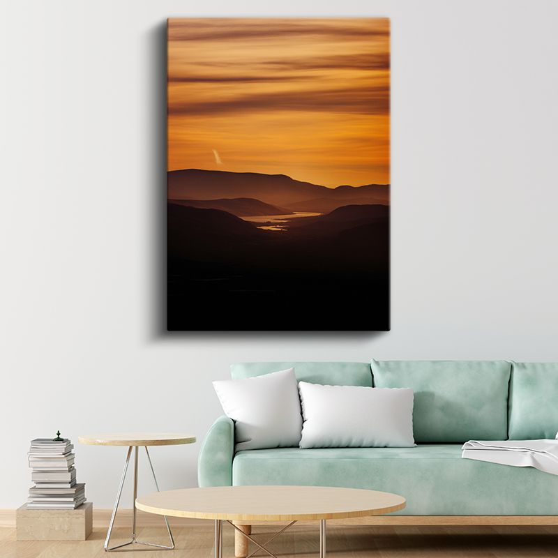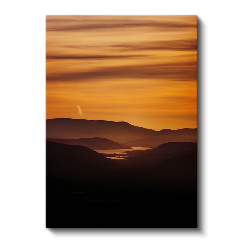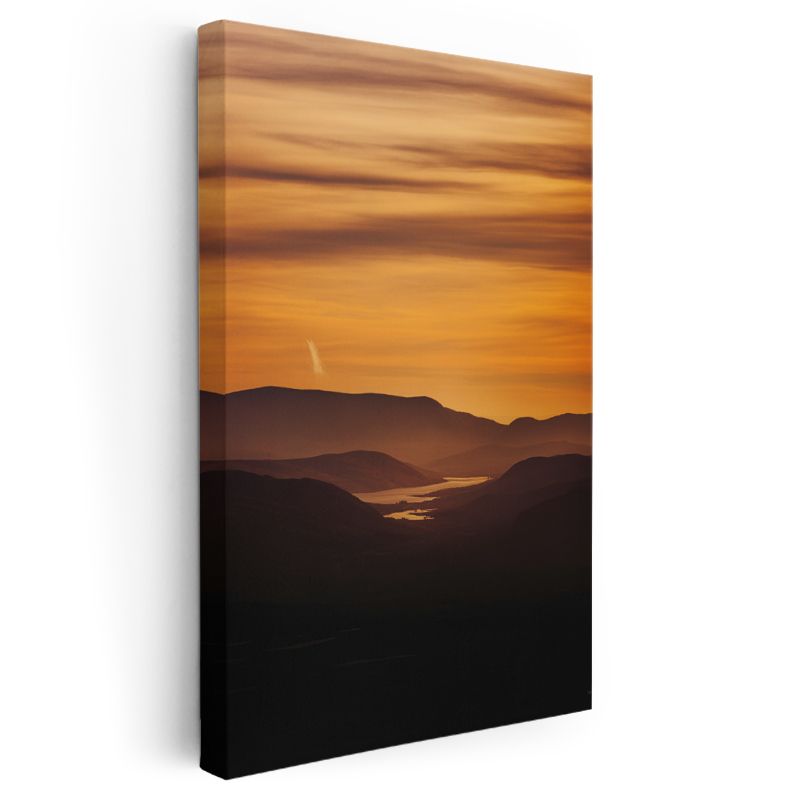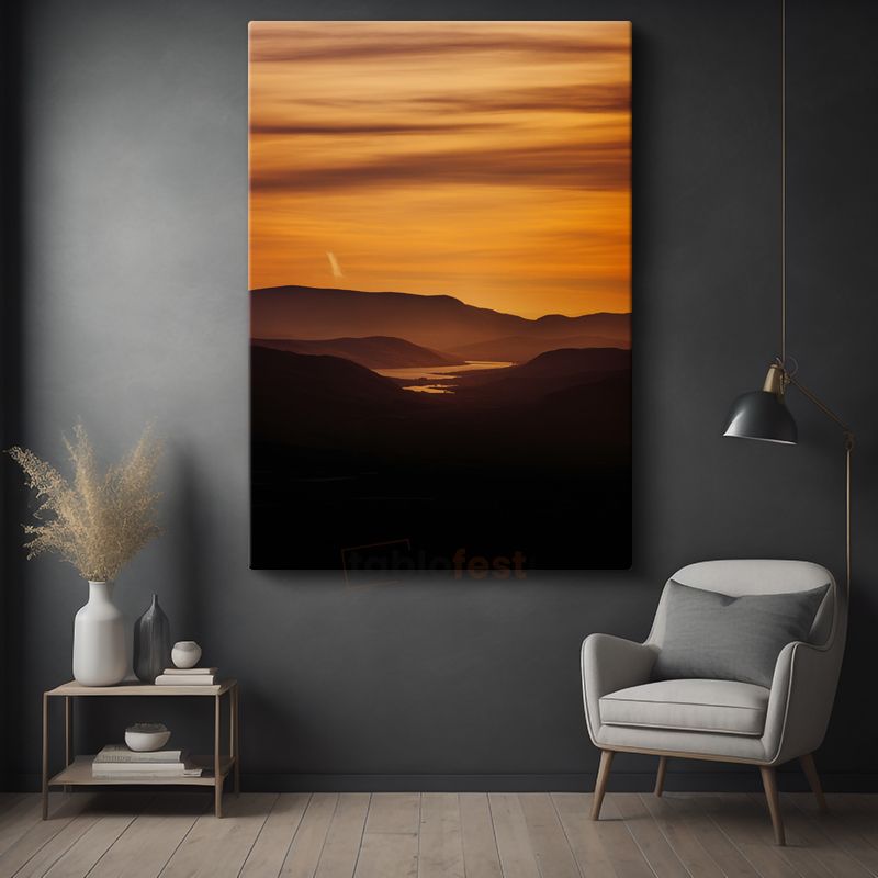 Altın Gün Batımı - Dağlar Arasında Parlayan Göl Kanvas Tablo