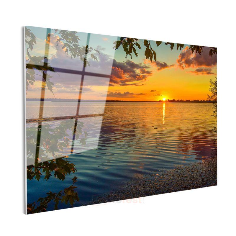 Altın Gün Batımı - Göl Üzerinde Yansımalar Cam Tablo
