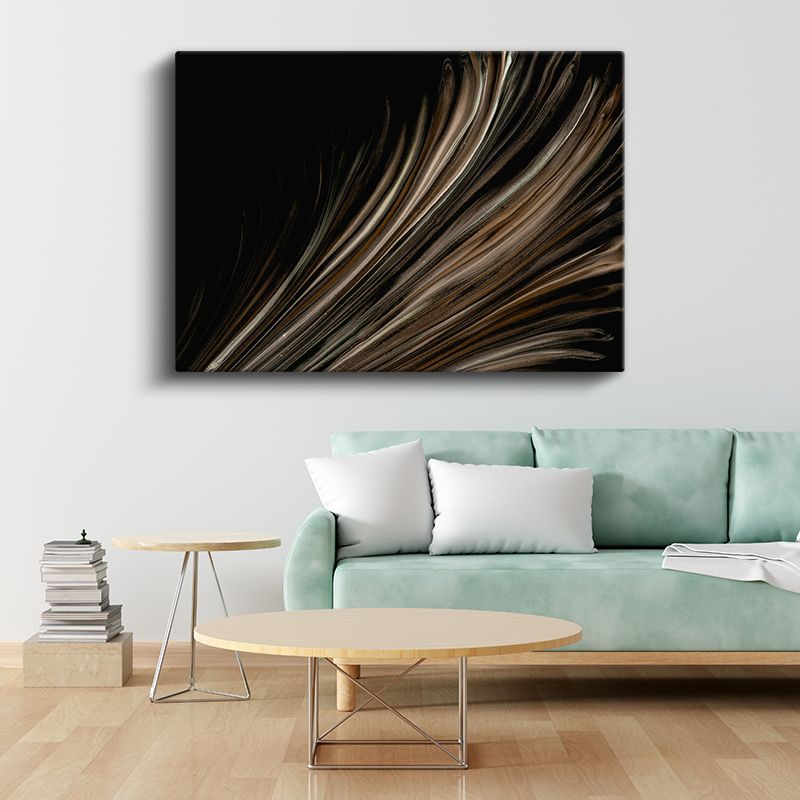 Altın Işıltı - Siyah Zeminde Dramatik Çizgiler Kanvas Tablo