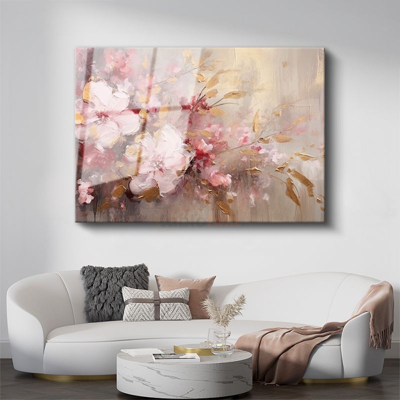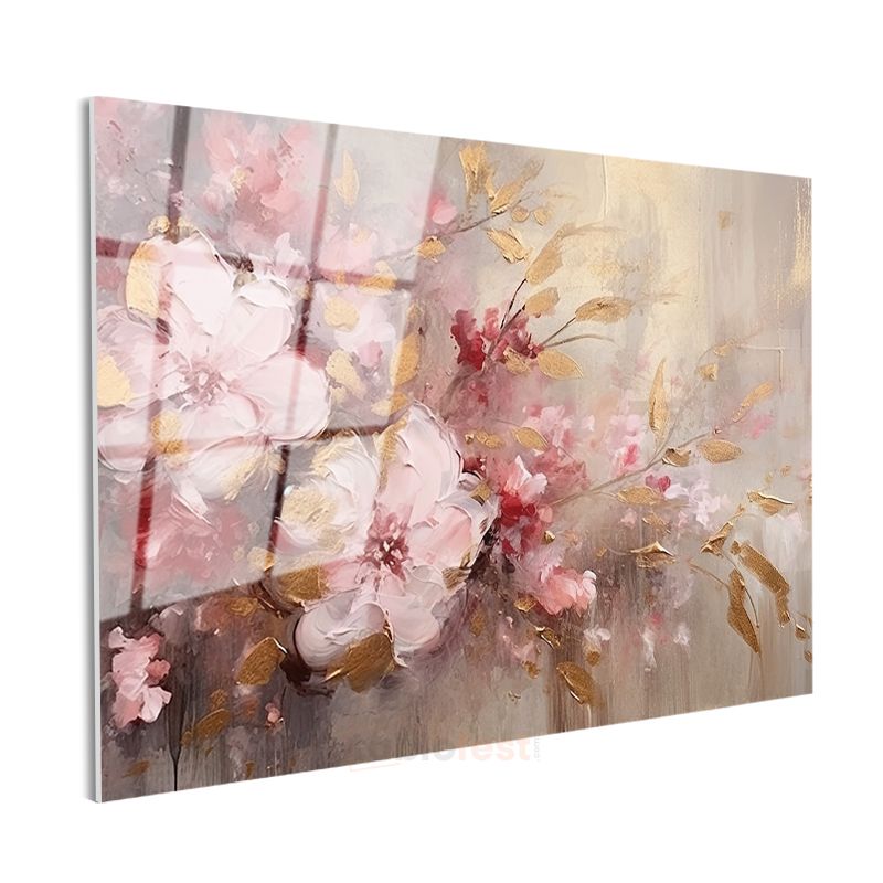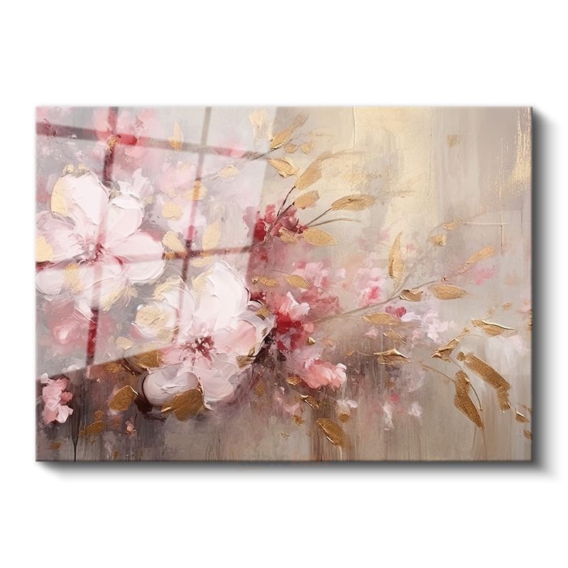 Altın Işıltılı Çiçek - Siyah Fonda Zarif Tasarım Cam Tablo
