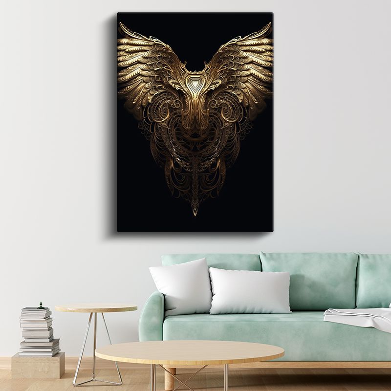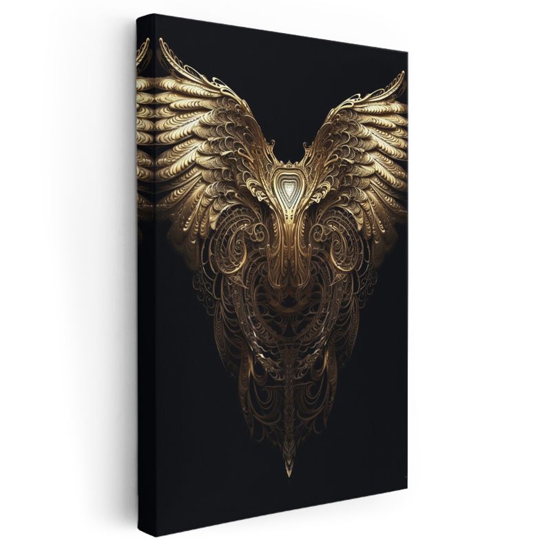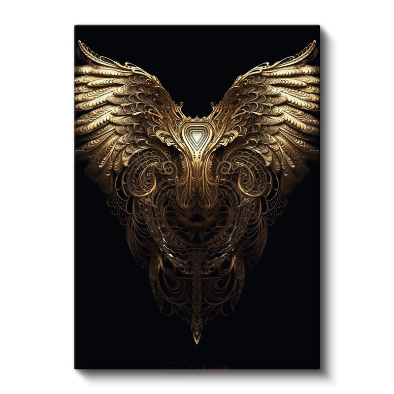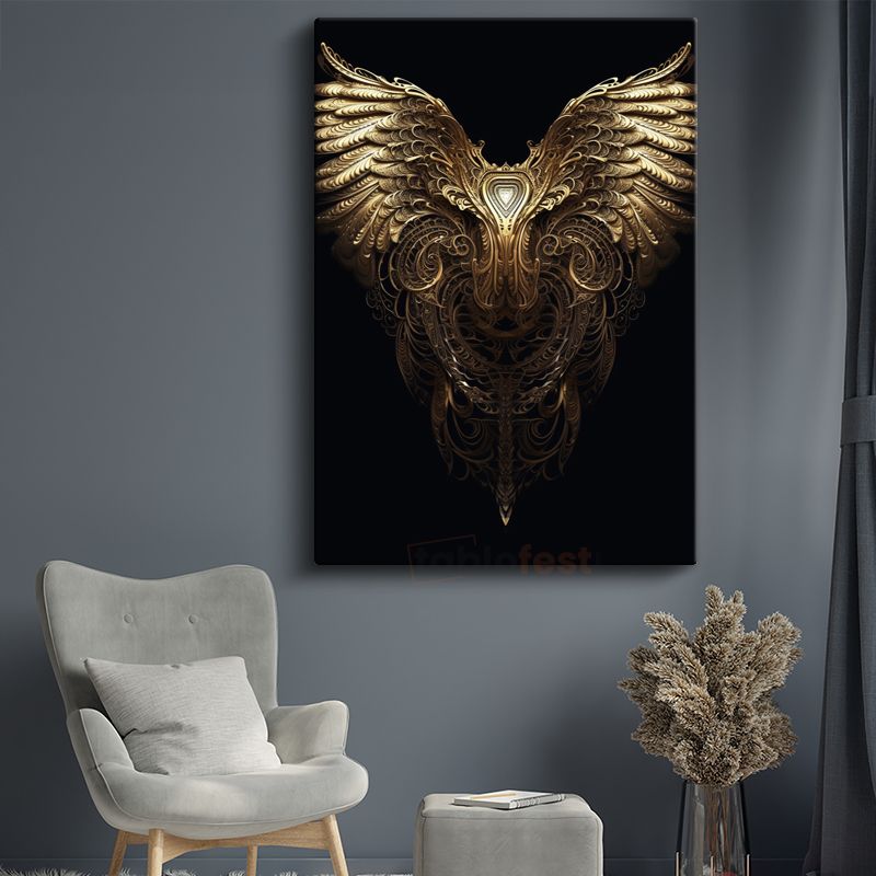 Altın Kanatlar - Karanlıkta Parlayan Detaylı İşçilik Kanvas Tablo