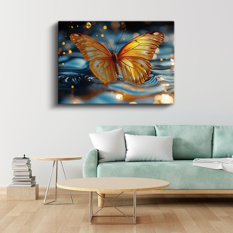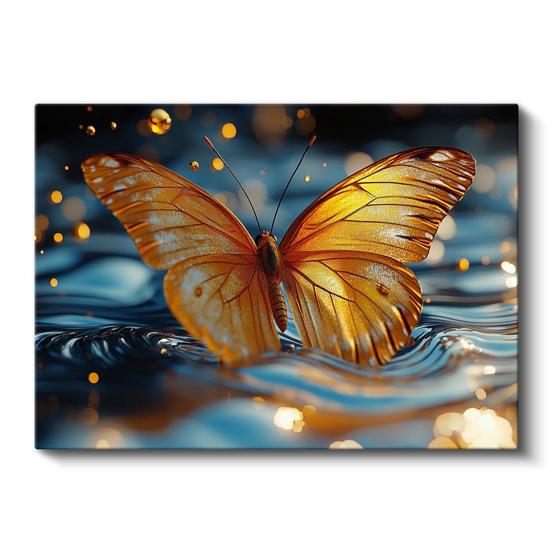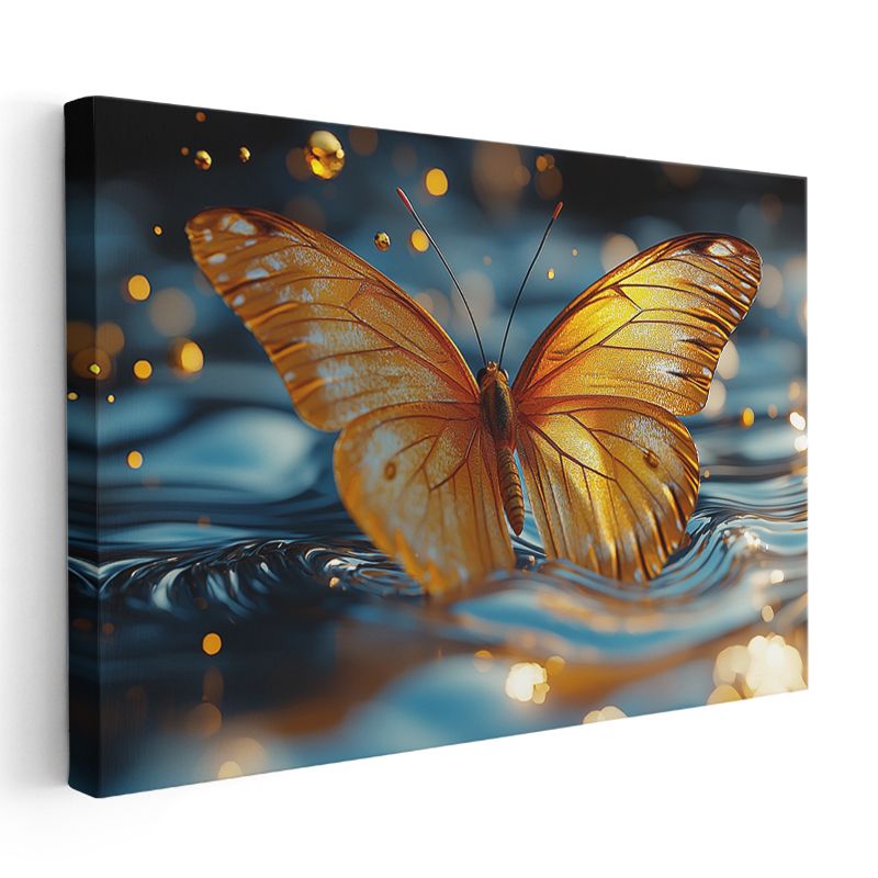 Altın Kelebek - Su Üzerinde Işıldayan Kanatlar Kanvas Tablo