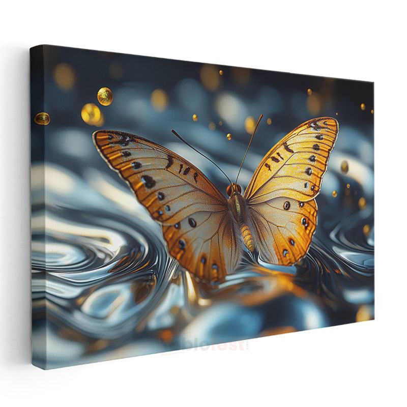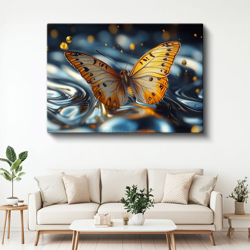 Altın Kelebek - Su Üzerinde Işıldayan Kanatlar Kanvas Tablo