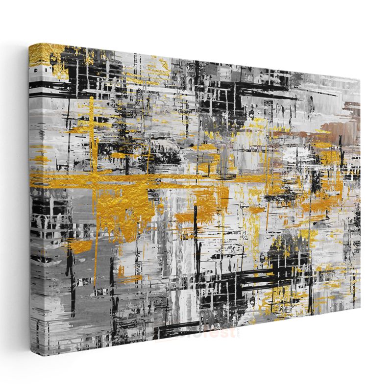 Altın Kontrast - Geometrik Soyut Çizgiler Kanvas Tablo