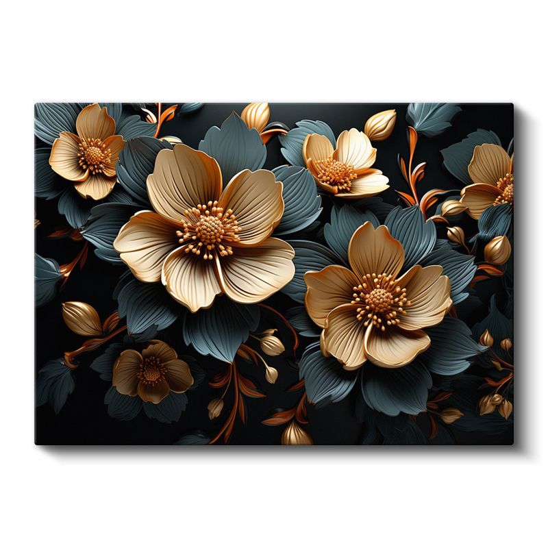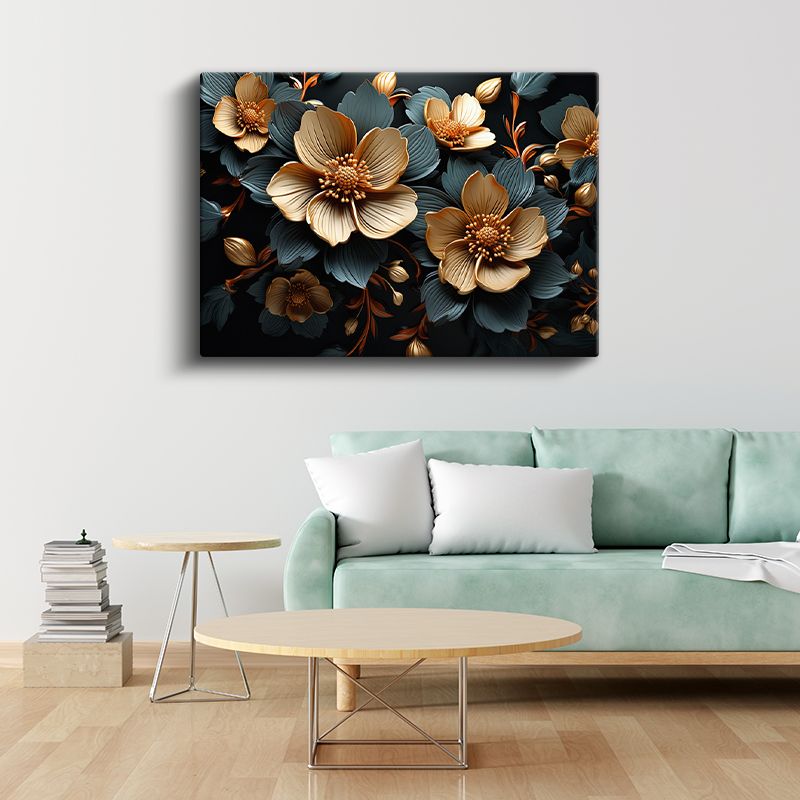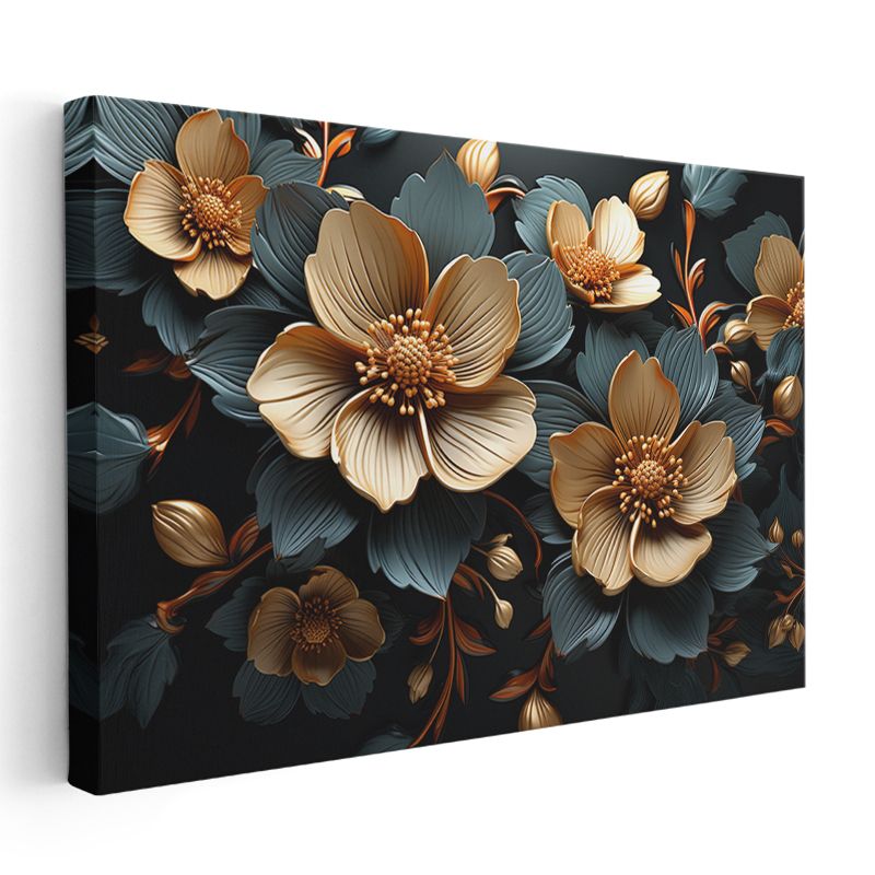 Altın Lotus - Siyah Fonda Lüks Çiçek Portresi Kanvas Tablo