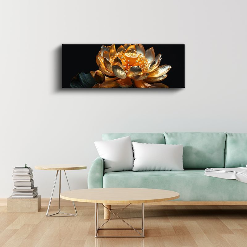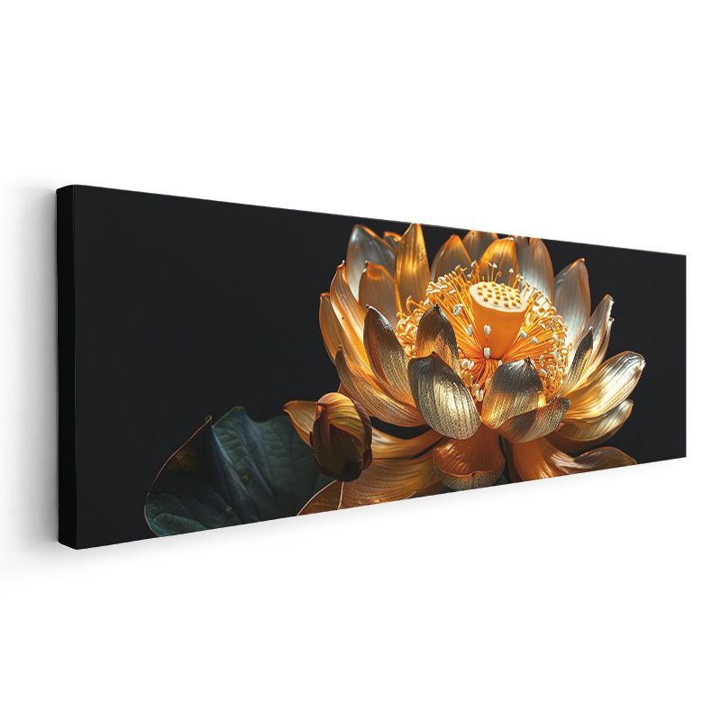 Altın Lotus - Siyah Zeminde Lüks Çiçek Tasarımı Kanvas Tablo