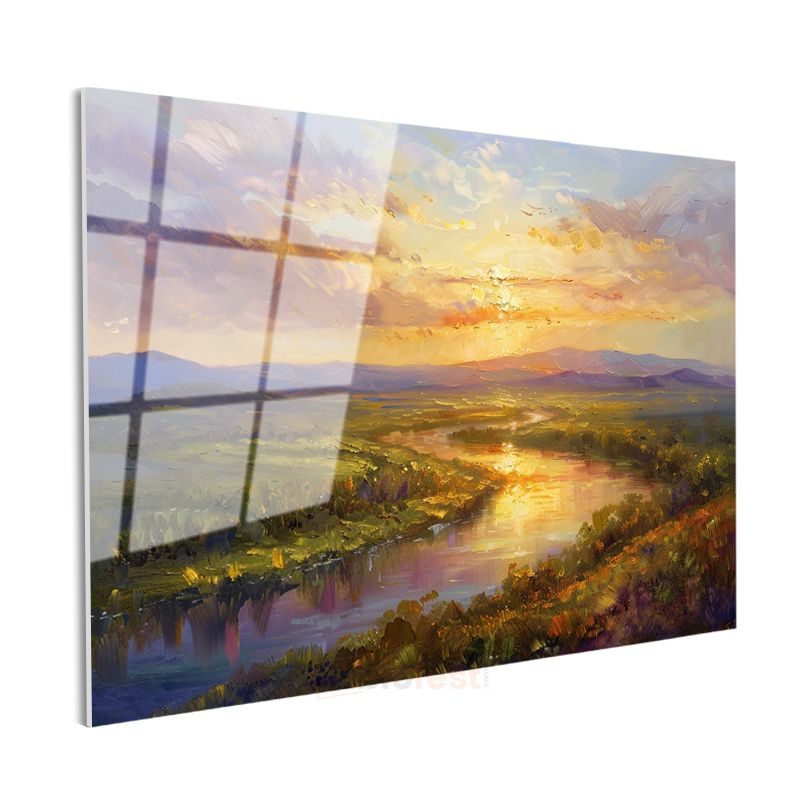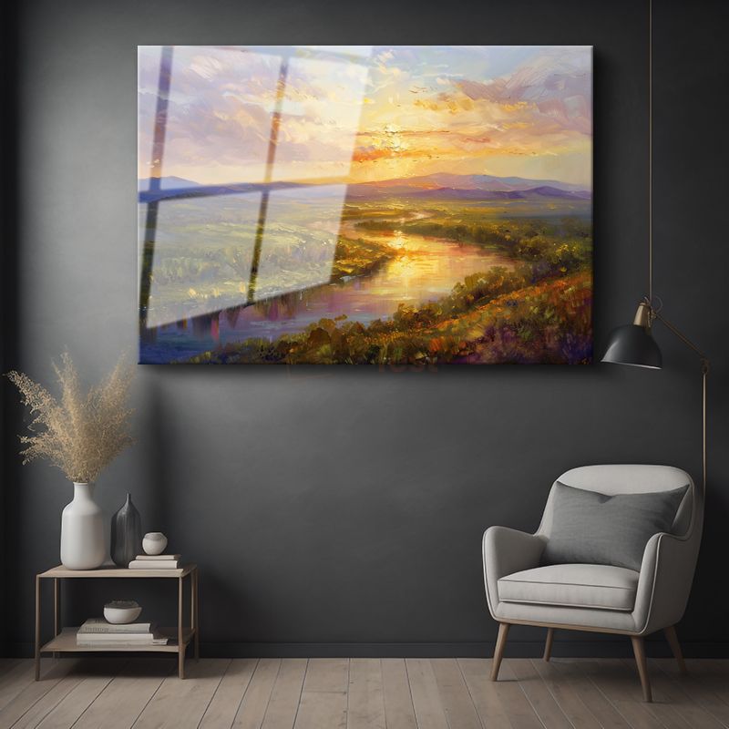 Altın Nehir - Gün Batımında Parlayan Vadi Cam Tablo