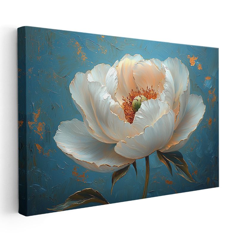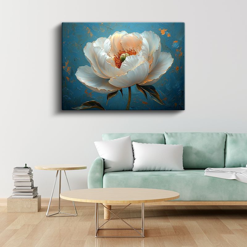 Altın Nilüfer - Dalgalı Suda Işıltılı Çiçek Portresi Kanvas Tablo