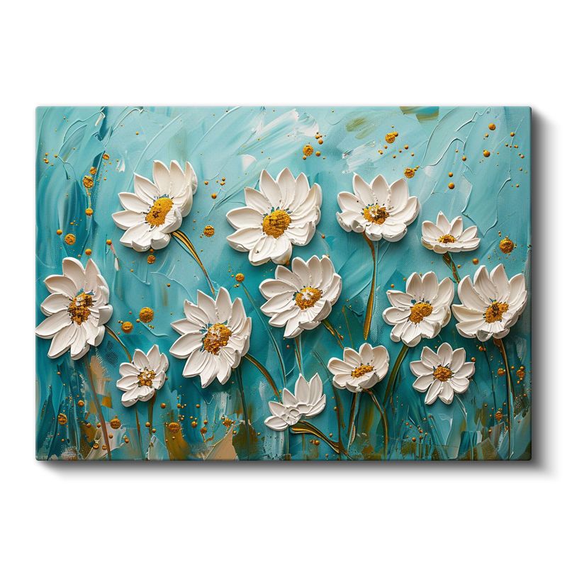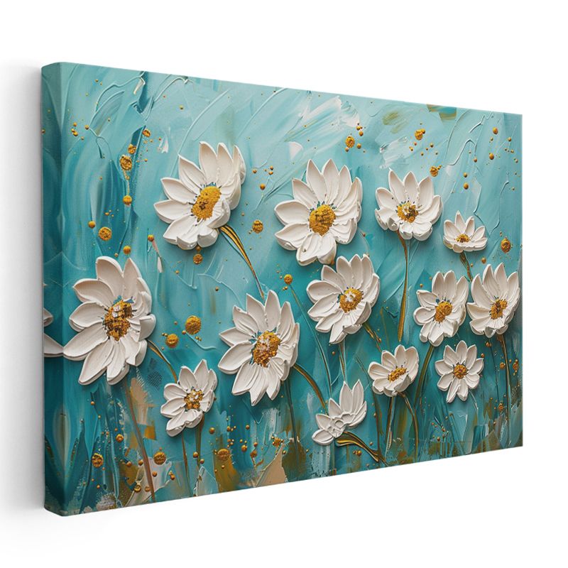 Altın Nilüfer - Turkuaz Dalgalı Suda Işıltılı Çiçek Kanvas Tablo