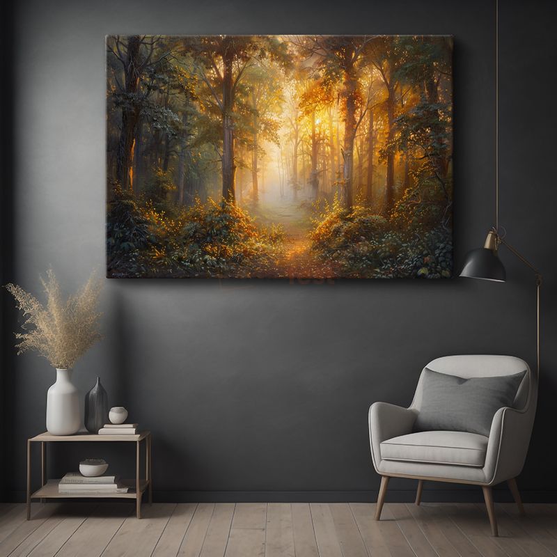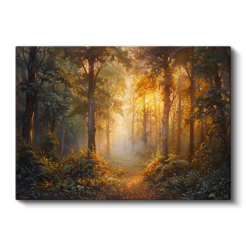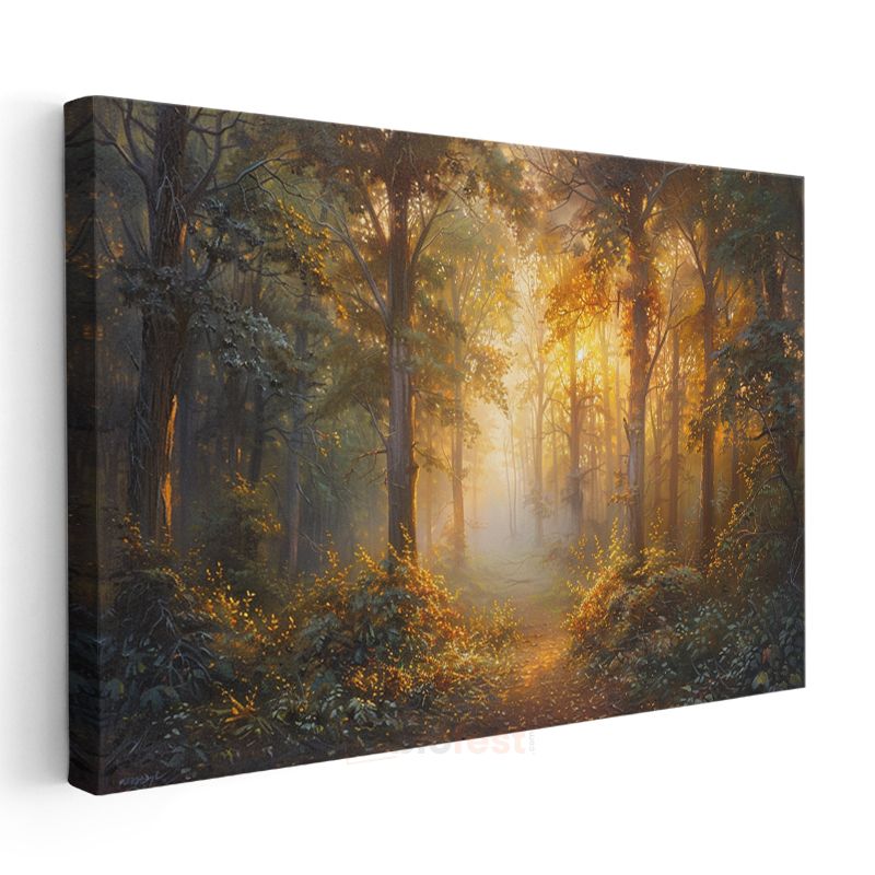 Altın Orman - Gün Işığıyla Aydınlanan Mistik Patika Kanvas Tablo