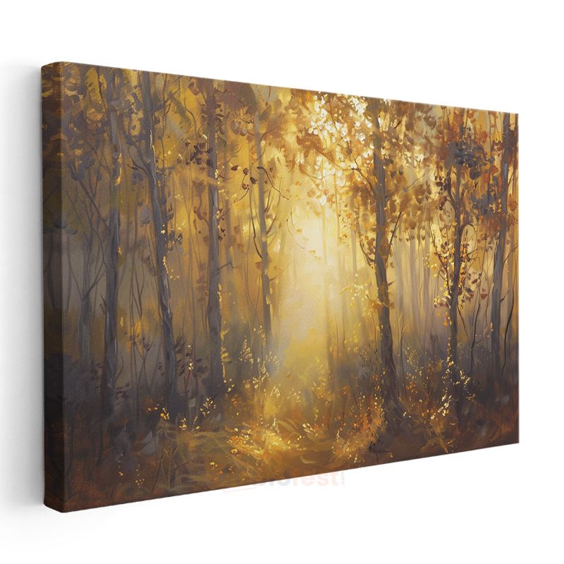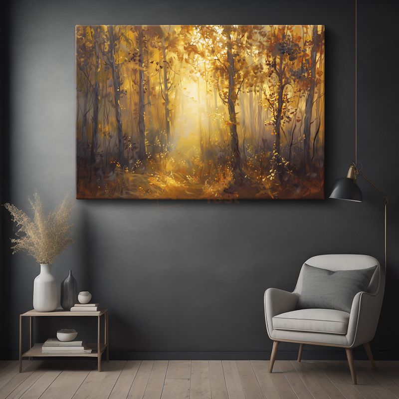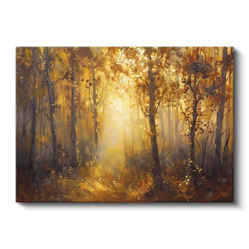 Altın Orman - Güneş Işığı Süzülen Sonbahar Ağaçları Kanvas Tablo