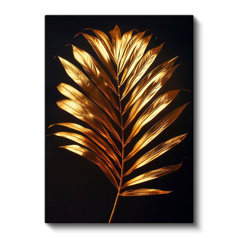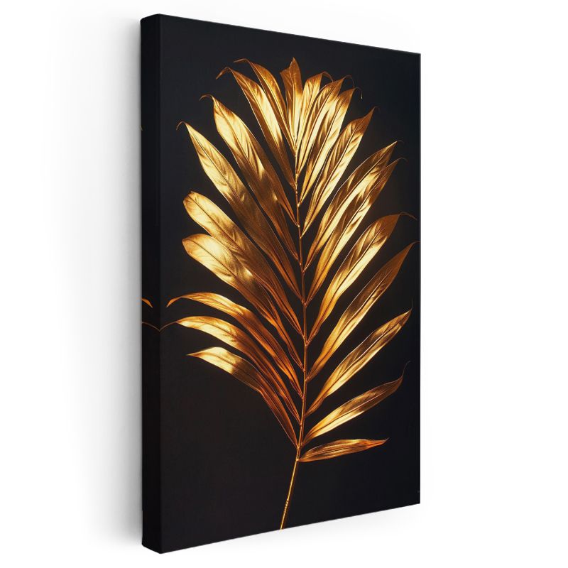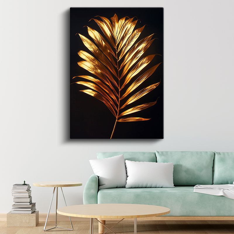 Altın Palmiye Yaprağı - Lüks Siyah Fon Botanik Kanvas Tablo