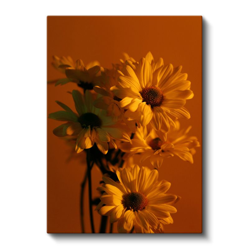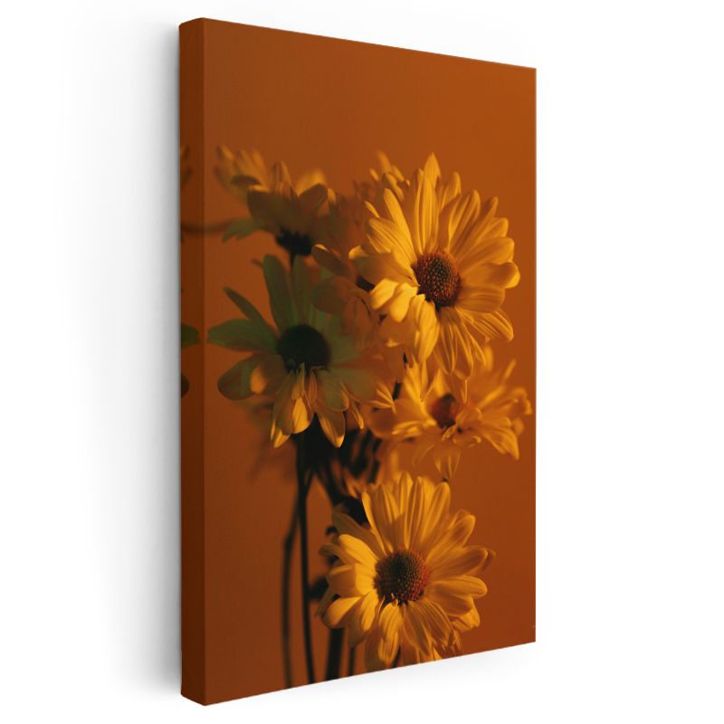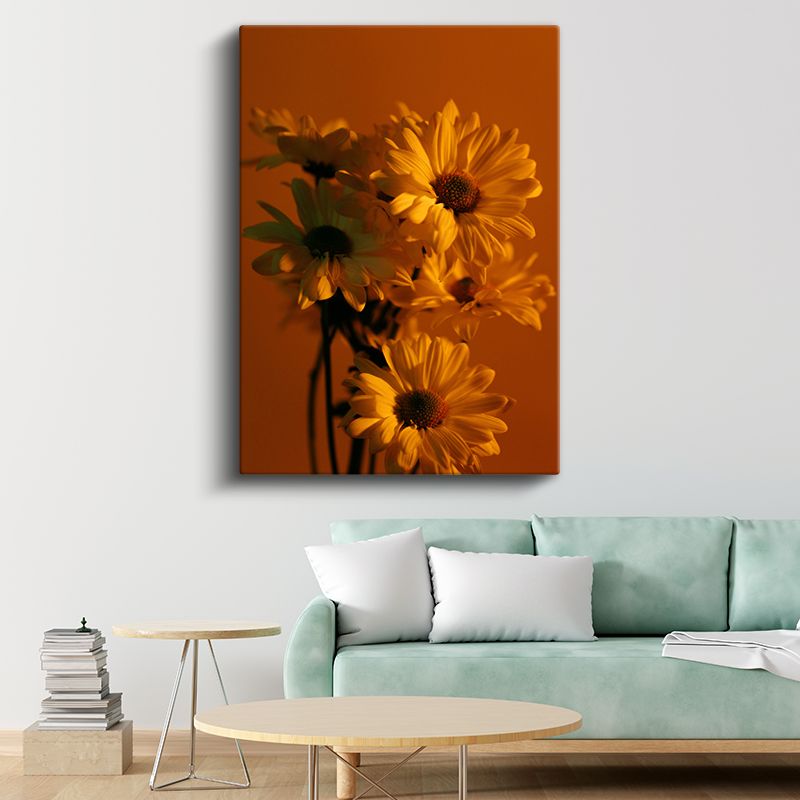 Altın Papatyalar - Sıcak Turuncu Fonda Çiçek Buketi Kanvas Tablo