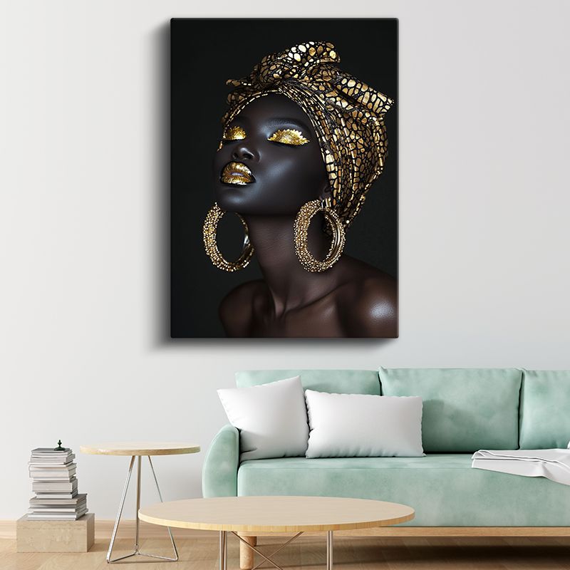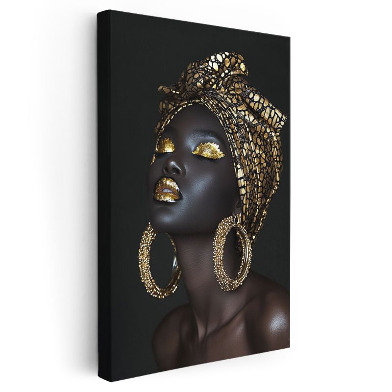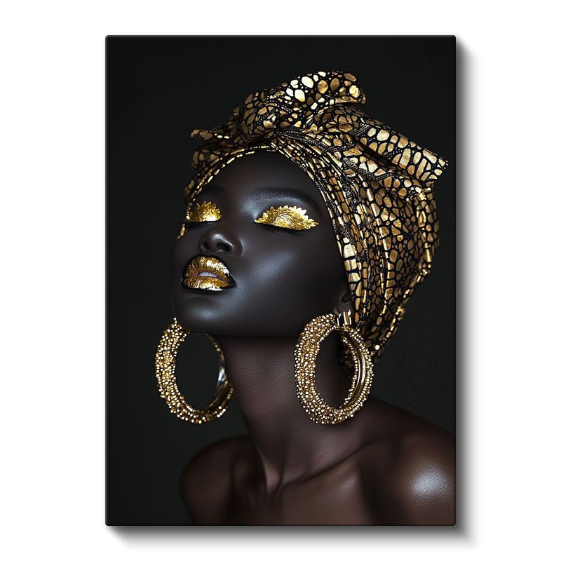 Altın Portre - Lüks Takılar ve Makyaj Kanvas Tablo