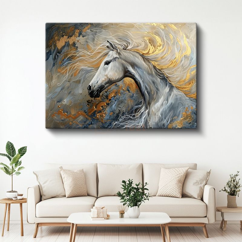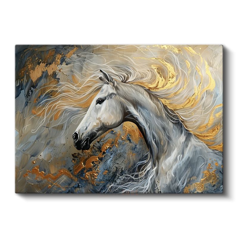 Altın Sıçramalar - Siyah At Profili Kanvas Tablo