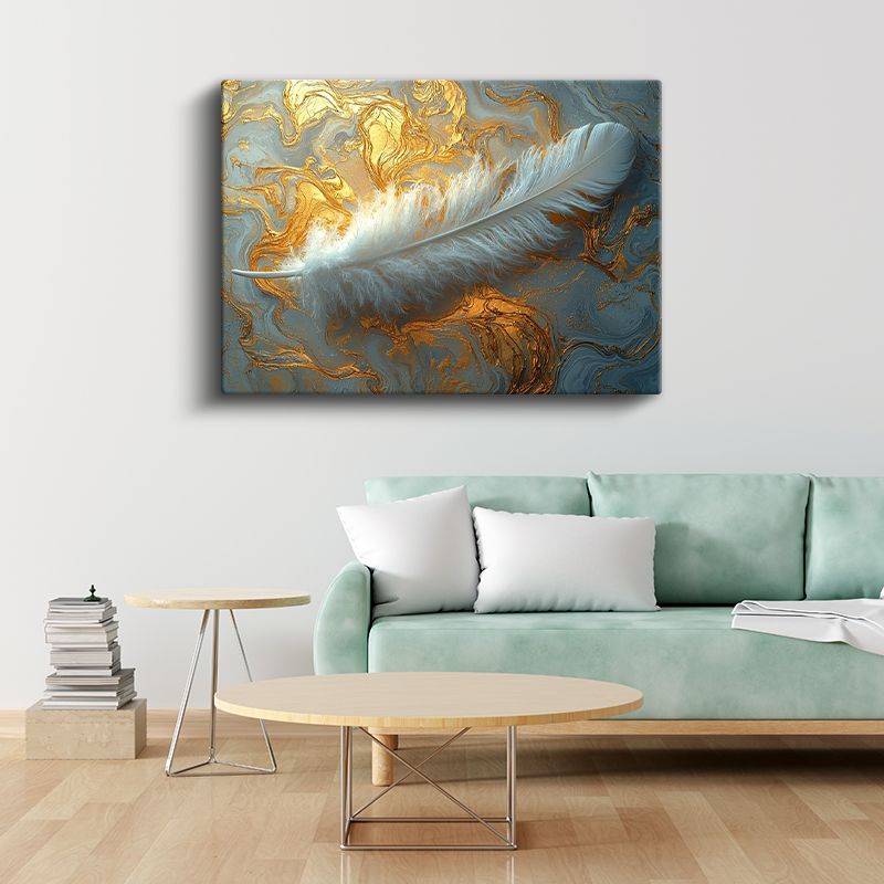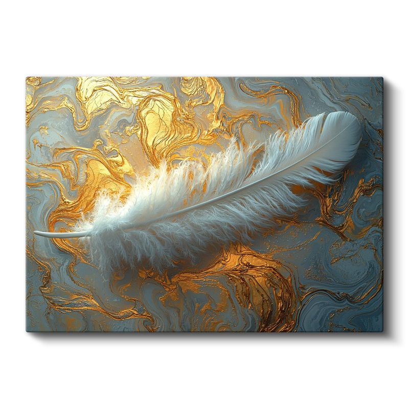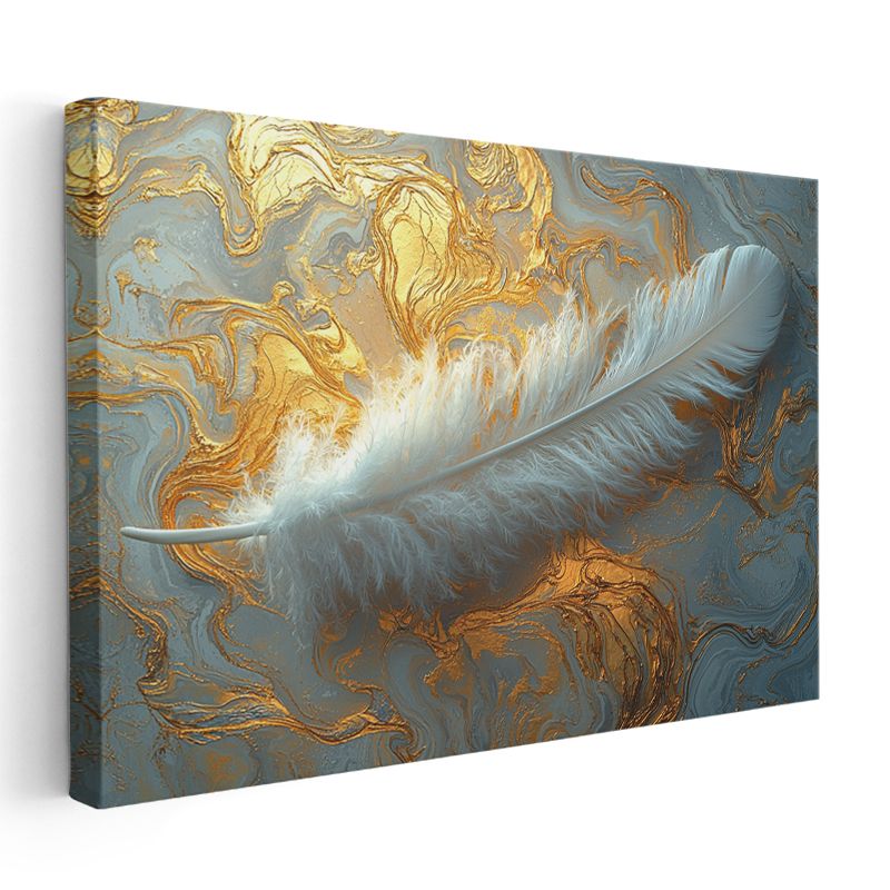 Altın Sıvı Doku - Zarif Beyaz Tüy Kanvas Tablo