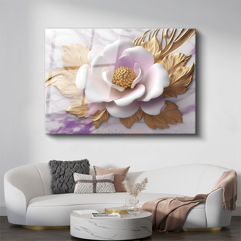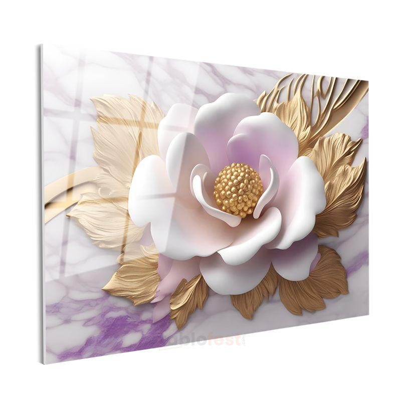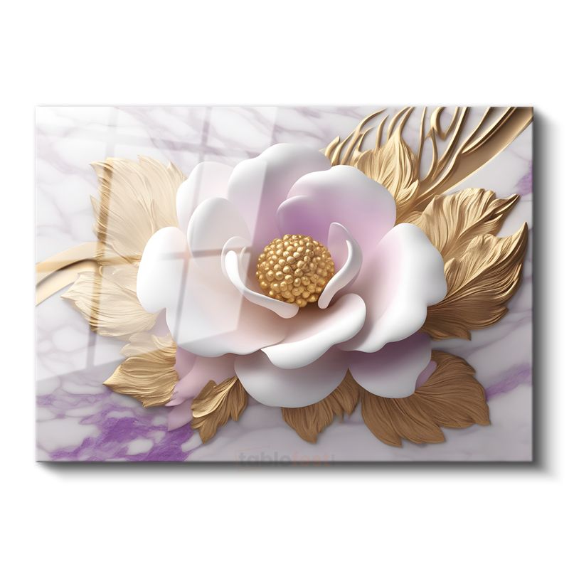 Altın Tomurcuklar - Siyah Fonda Zarif Çiçek Tasarımı Cam Tablo