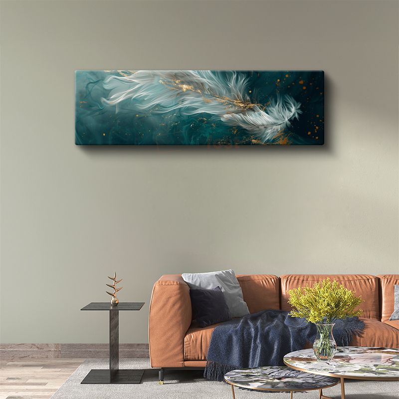 Altın Tüyler - Turkuaz Zeminde Zarif Detaylar Kanvas Tablo