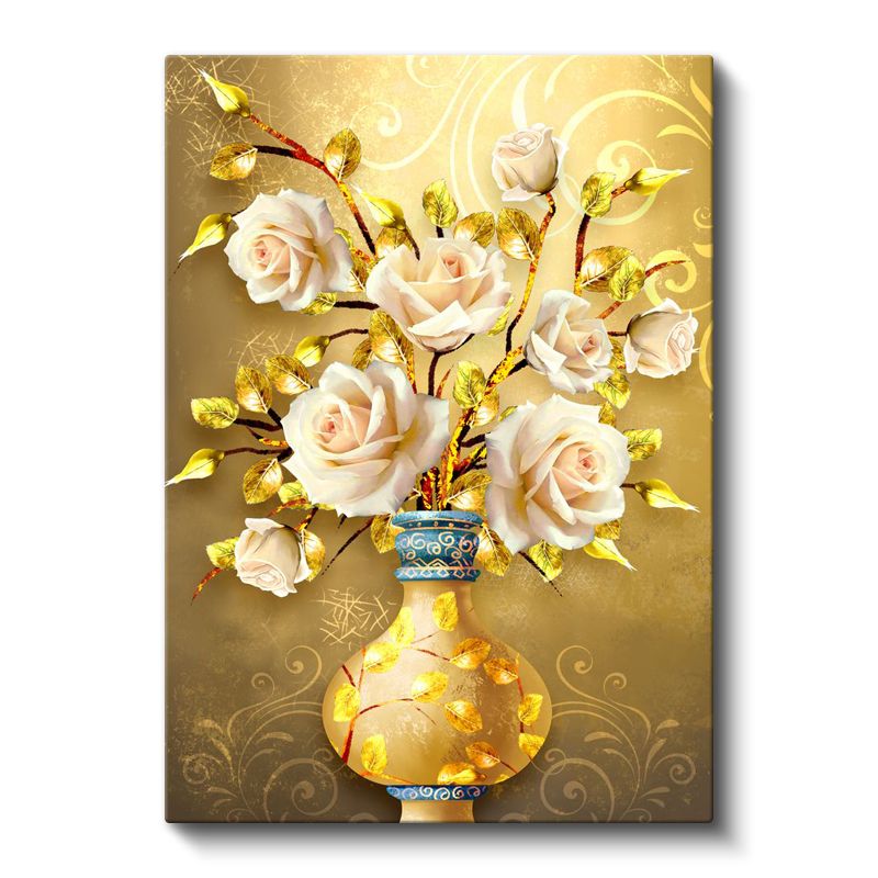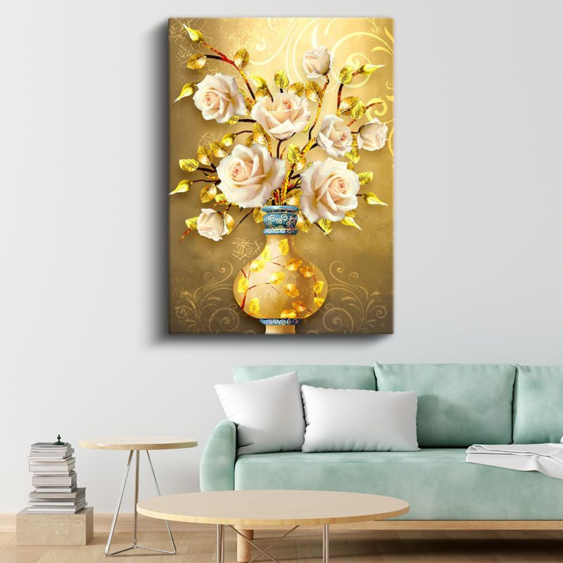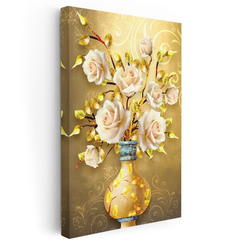 Altın Vazo - Lüks Beyaz Güller Kanvas Tablo