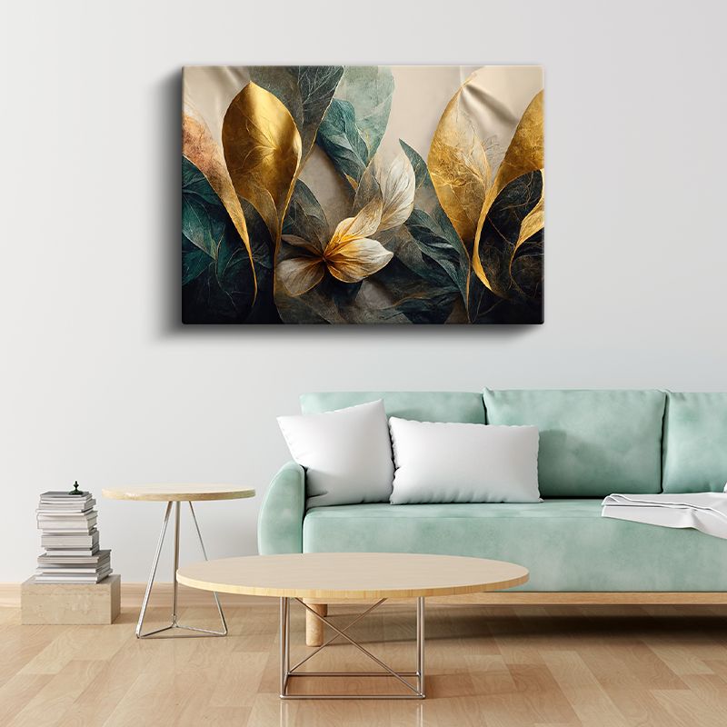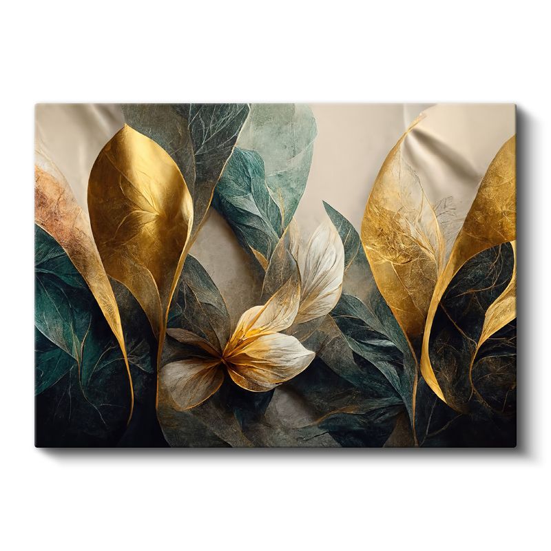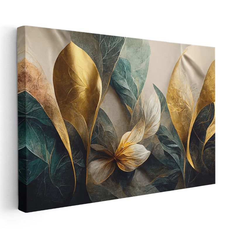 Altın Yapraklar - Modern Botanik Kompozisyon Kanvas Tablo