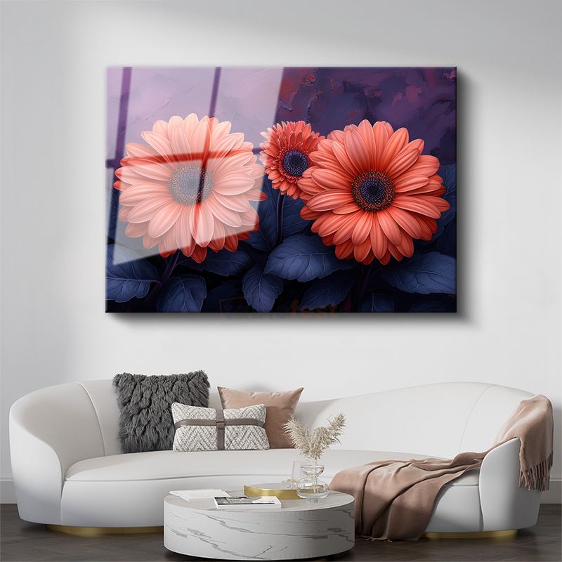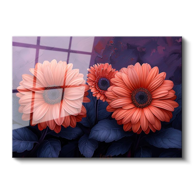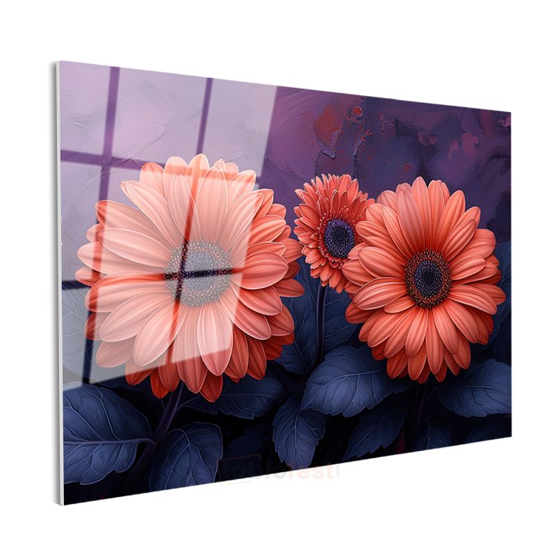 Altın Yapraklar - Turkuaz Detaylı Lüks Çiçek Tasarımı Cam Tablo