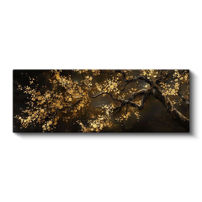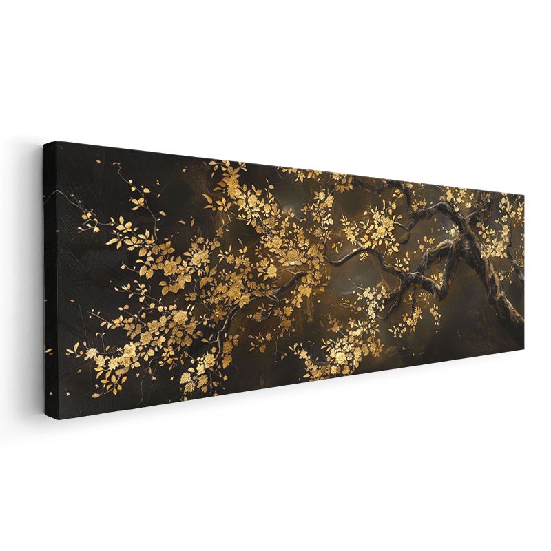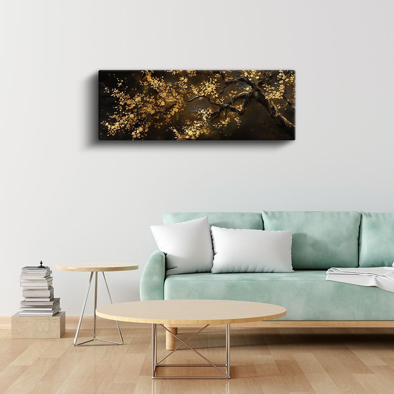 Altın Yapraklı Ağaç - Siyah Zeminde Sonbahar Temalı Sanatsal Kompozisyon Kanvas Tablo