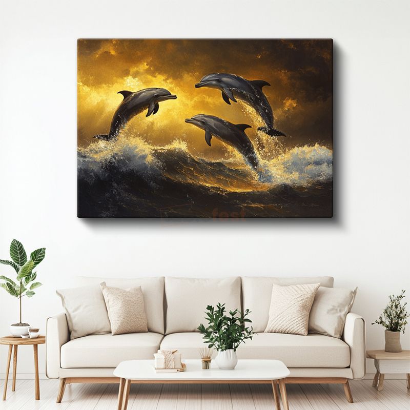 Altın Yunuslar - Sıçrayan Üçlünün Dansı Kanvas Tablo