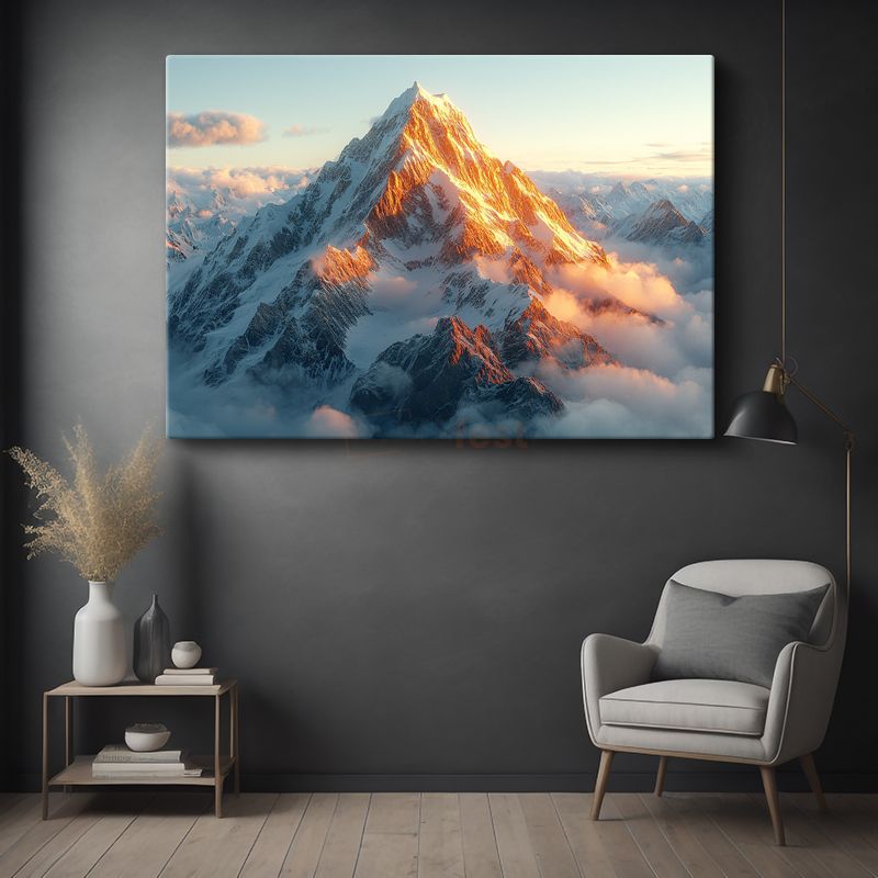 Altın Zirve - Güneş Işığında Dağ Silüeti Kanvas Tablo