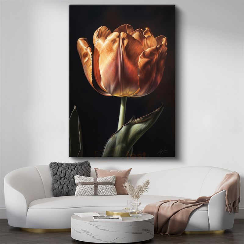 Amber Lale - Dramatik Siyah Fonlu Çiçek Portresi Kanvas Tablo
