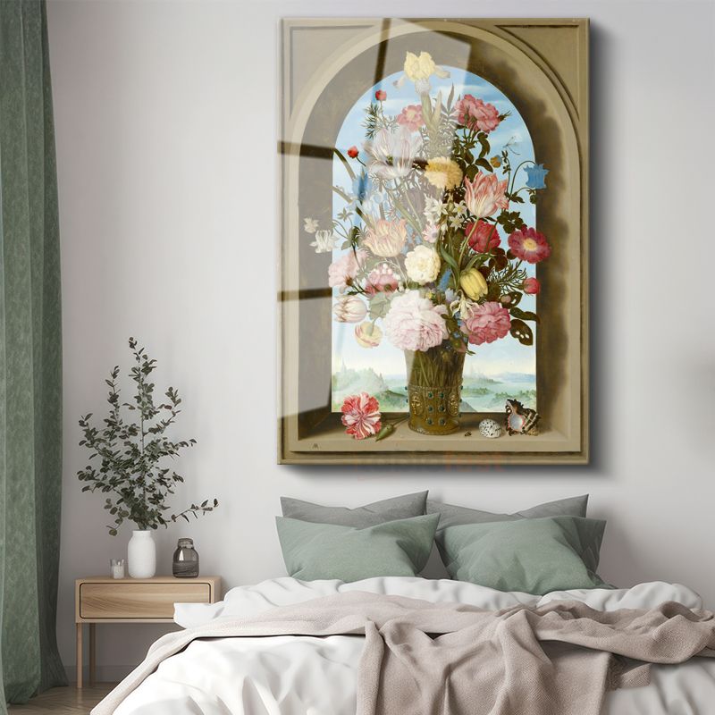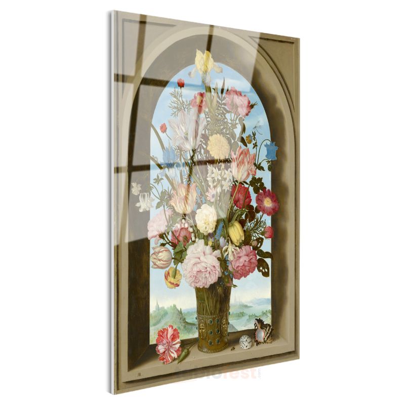 Ambrosius Bosschaert - Kemerli Pencerede Çiçekler Cam Tablo