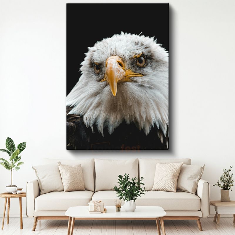 Amerikan Kartalı - Siyah Zeminde Keskin Bakışlı Portre Kanvas Tablo