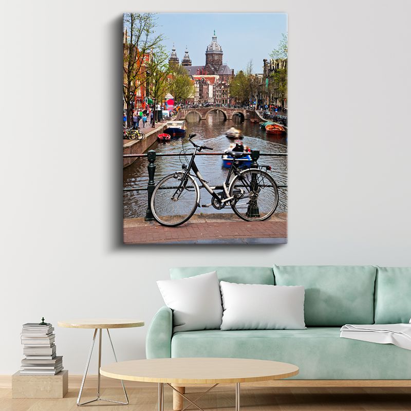 Amsterdam Kanalları - Bisiklet ve Köprüler Kanvas Tablo